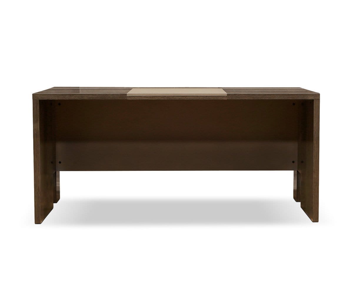 Welcome a stunning centerpiece into your office space. The Akana 66” desk is finished with a high gloss that highlights the wood grain gorgeously for a luxe, yet organic look. Smoky chrome accents complete the contemporary aesthetic.