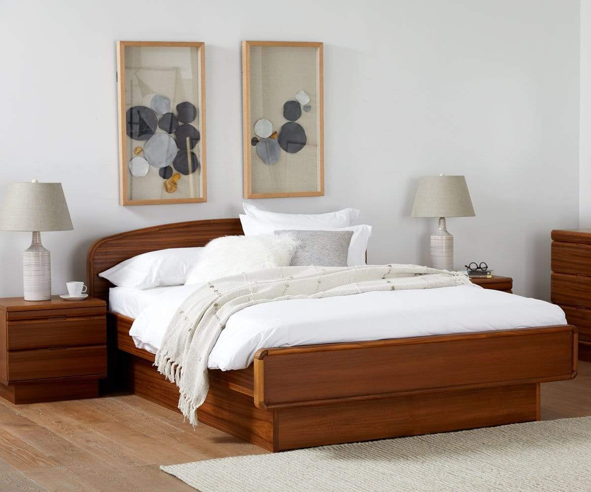 Give your bedroom a warm, retro feel with the Anisa panel bed. Crafted with a mix of solid teak and teak veneers. A natural finish on the frame allows the wood grain to shine through.