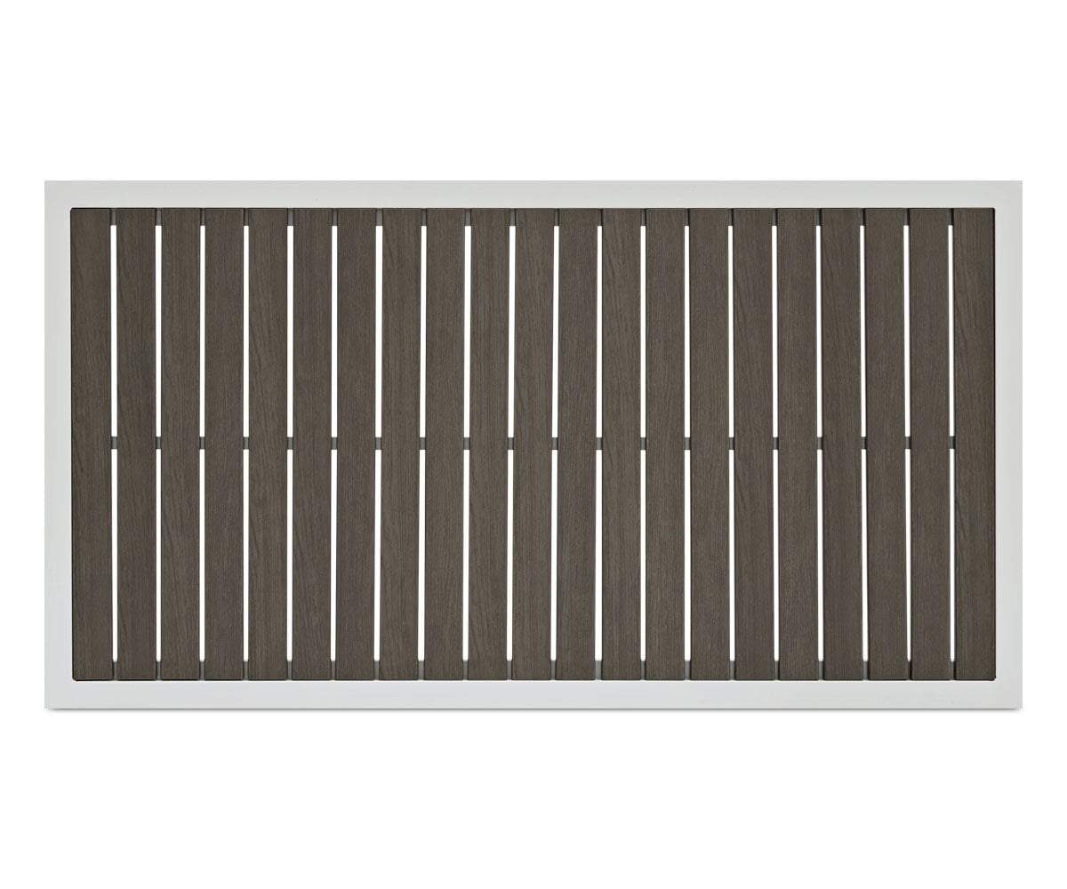 Modern in design, the Aurora coffee table is an attractive surface to place your refreshments, appetizers, plants, or decorative items. Featuring a white powder-coated aluminum frame with tabletop of resin wood slats, it is both durable and lightweight for enjoyment season after season.