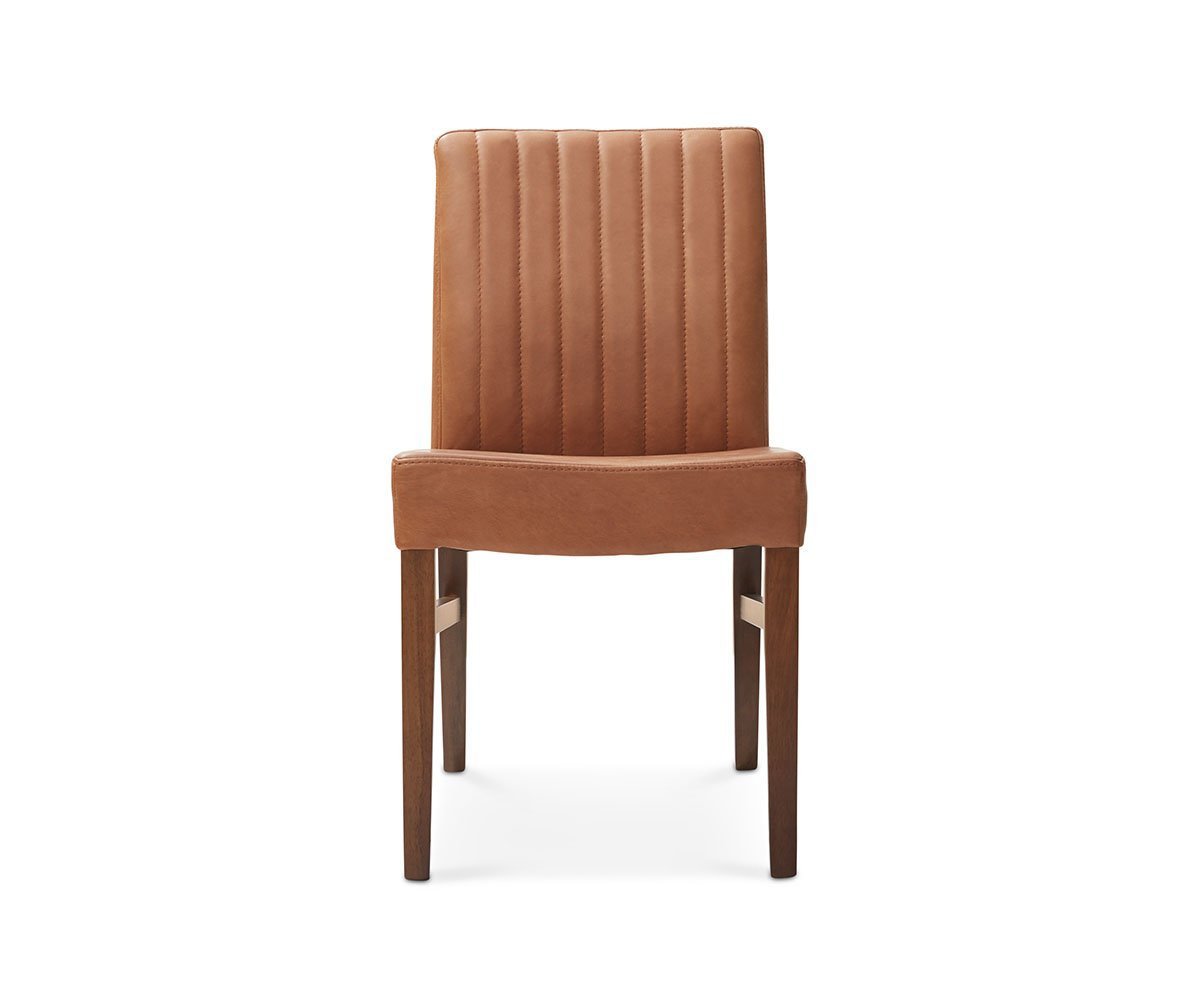 Bold in scale, the Barrima chair is a substantial choice that compliments any style dining table. The leather seat and back provide utmost comfort and are beautifully balanced by the slightly curved back legs. Natural characteristics in the hide change over time, making each piece a one-of-a-kind ageless beauty.