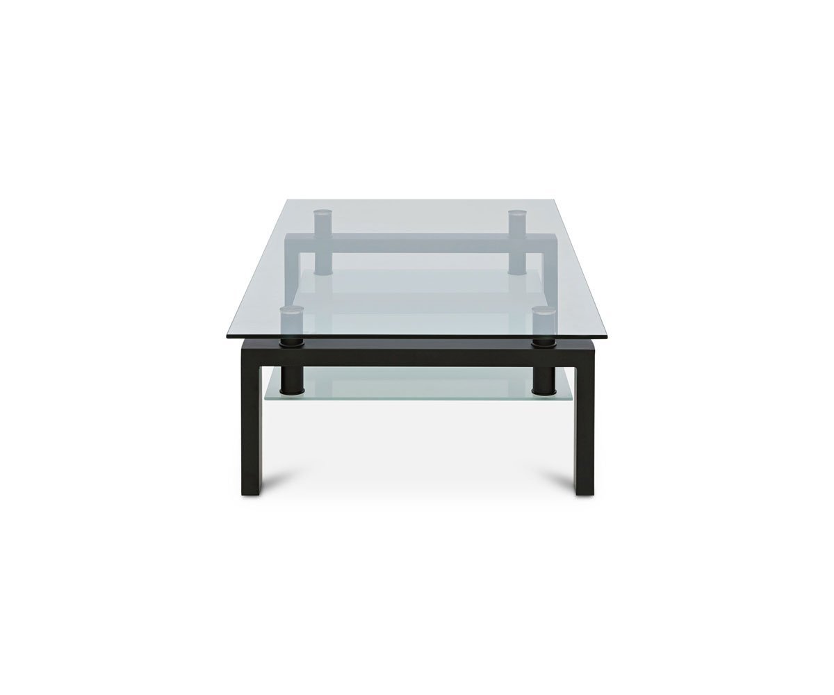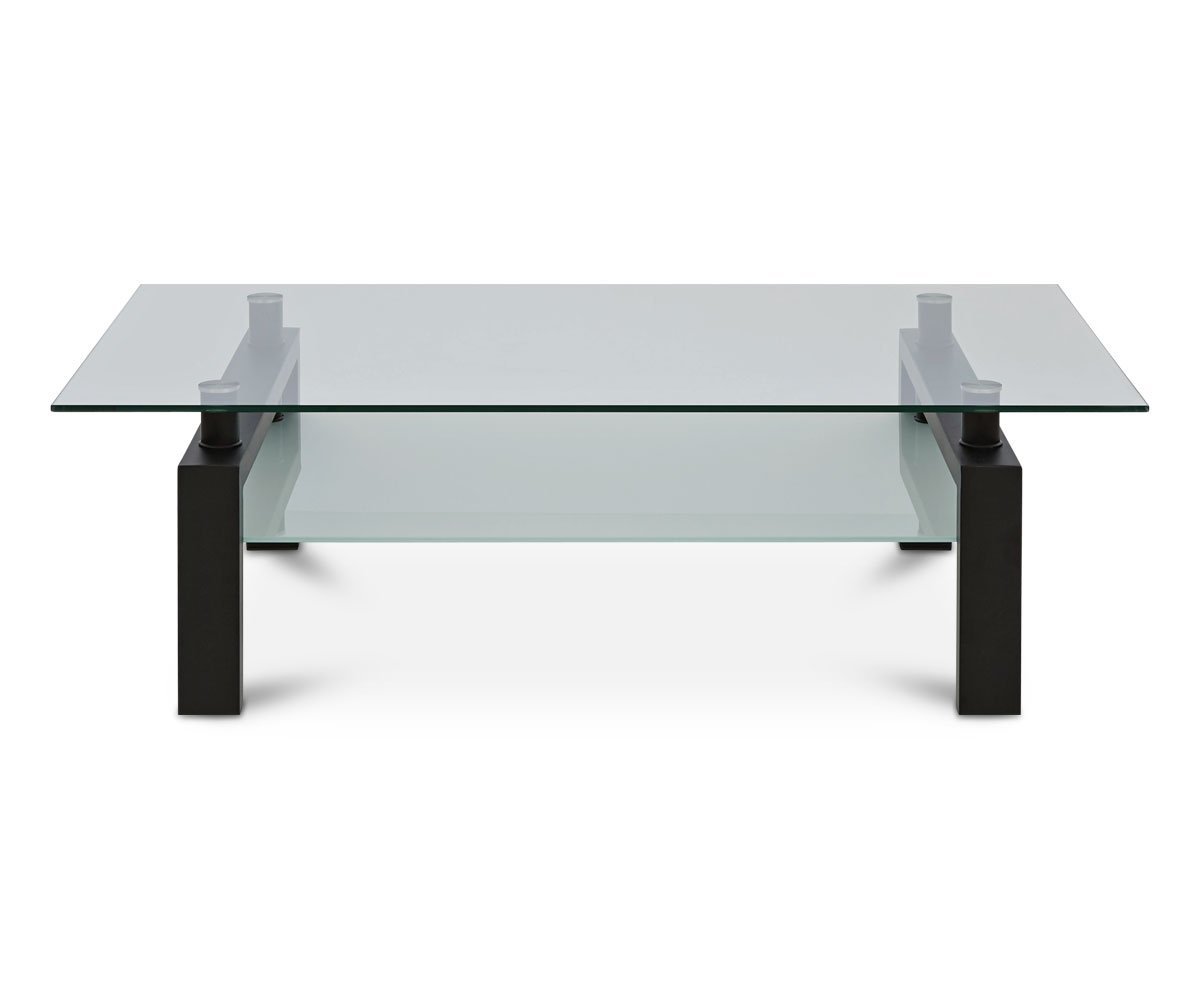 Create a modern, contemporary feel in your living room with the Carmona rectangle coffee table. The statuesque design features bold metal legs in a powder-coated black finish. These provide a beautiful contrast against the clear tempered clear glass of the top that appears to float above the frosted tempered glass shelf with the help of the coordinating cylindrical spacers.