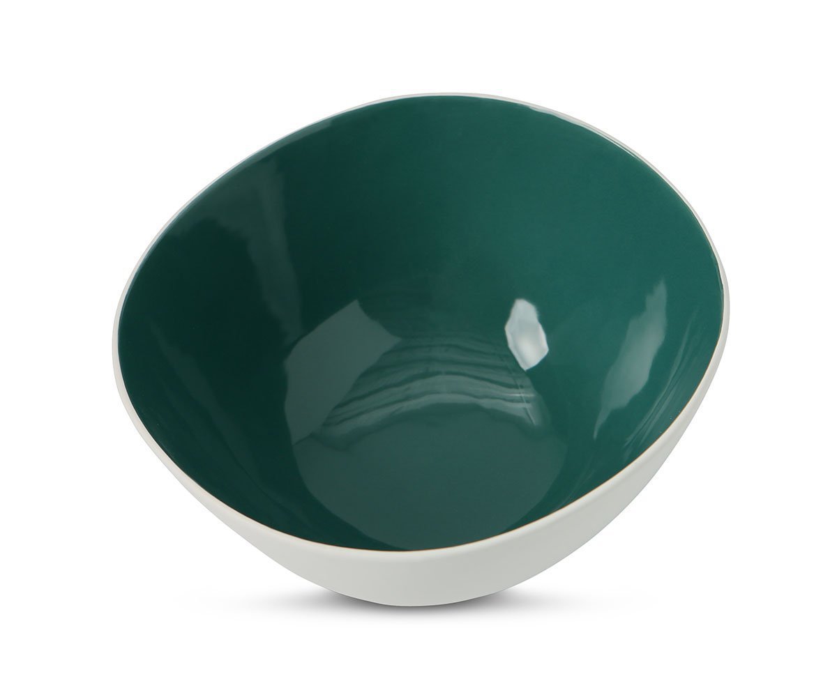 Admire the simple, organic form of the Caryn ceramic bowl. Its white outside blends with any decor, while the glossy inside provides a fresh burst of color. Find the perfect spot on your tabletop or shelf and use this decorative piece to enhance your living space.