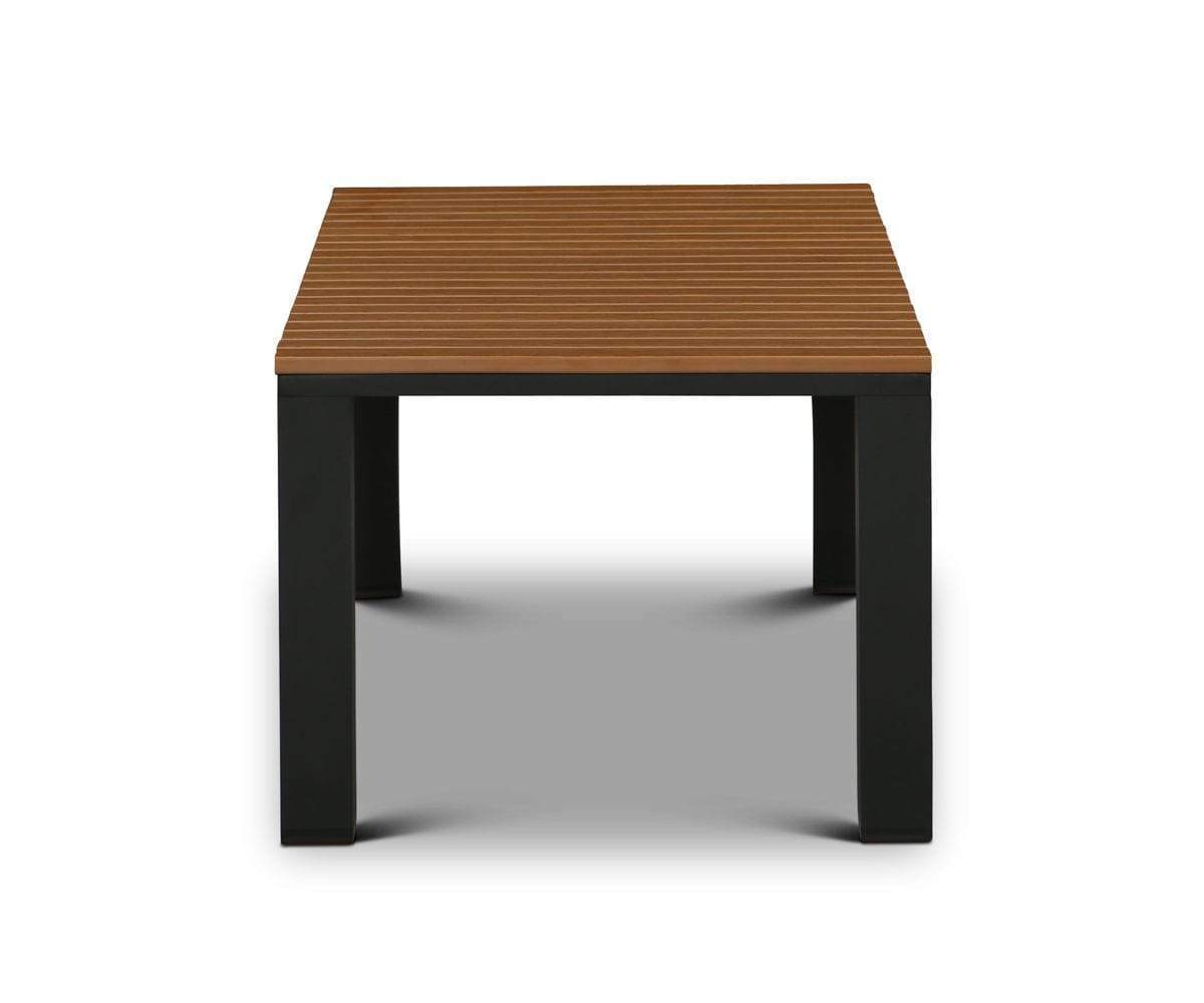 Complete your outdoor seating arrangement with the Da Costa coffee table. The faux-teak tabletop add a tropical sensibility to the piece, while the black powder coated frame offers stunning visual contrast.