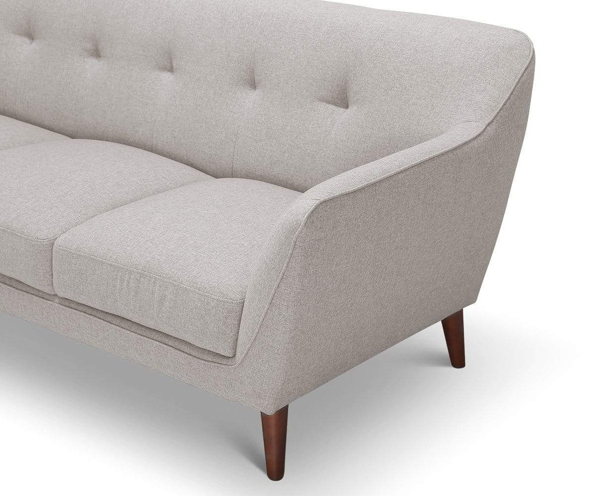 Create the living room of your dreams with the shapely Dakota sofa. The high backrest seamlessly flows into the slanted armrests for an elegant look. Five tufted buttons adorn the frame, giving this piece a minimal, clean profile. Plus, angled, tapered legs add a subtle mid-century feel.