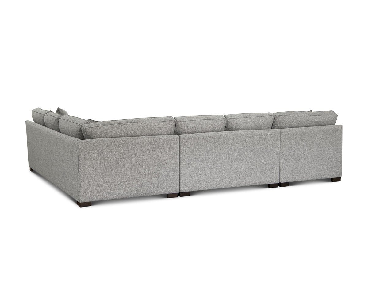 This is family seating at its finest. The Dinan sectional blends a modern sensibility with easy comfort. Firm cushions, deep seat depth and low backrests come together in a sleekly, tailored design. With a corner seat and chaise end, it comfortably seats up to six people.