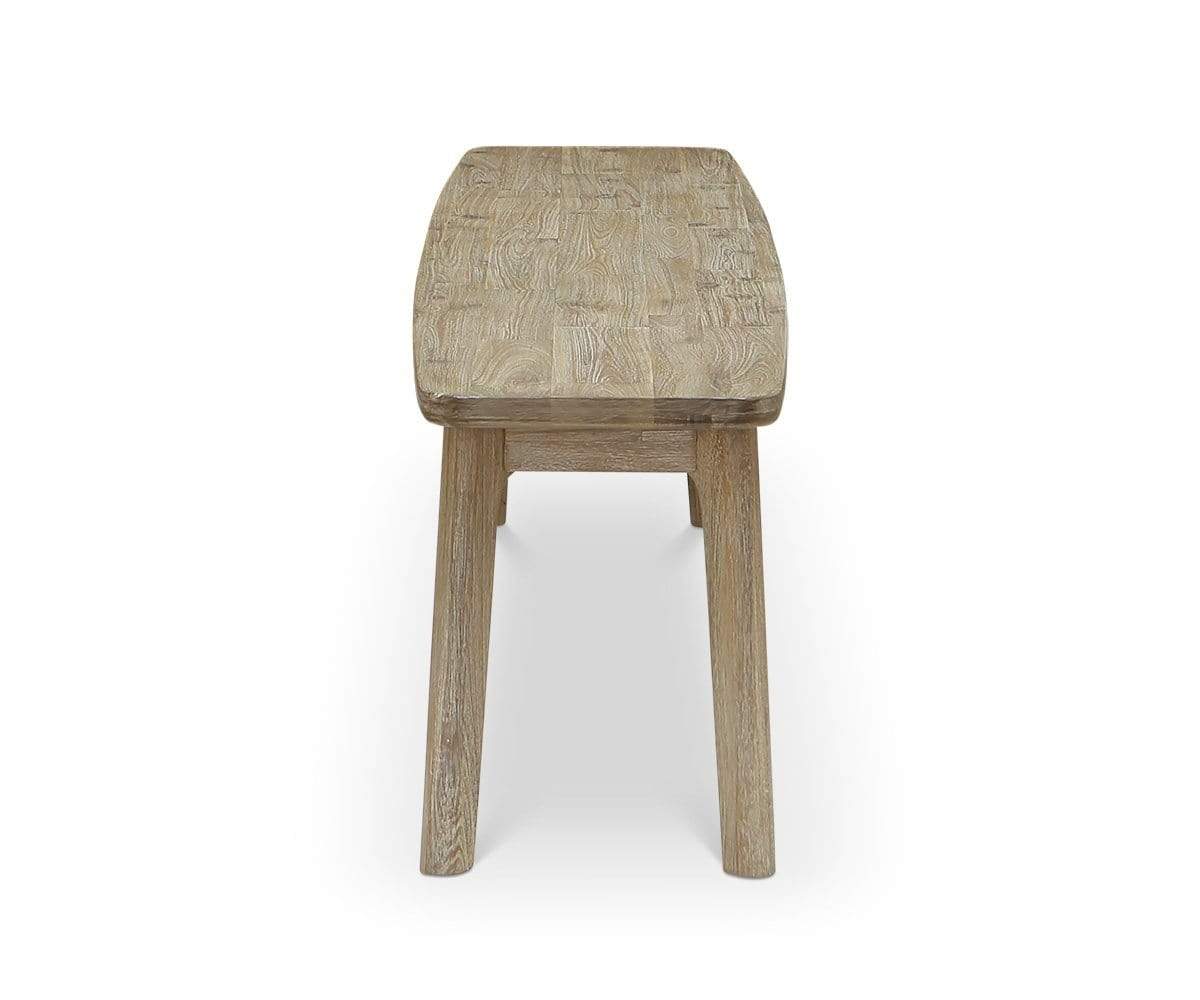 Opt for a more traditional approach to dining room seating with the Eckler bench. It pairs perfectly with the Eckler extension table. Crafted with solid acacia wood, it features a light grey stain to highlight the swirling grain.