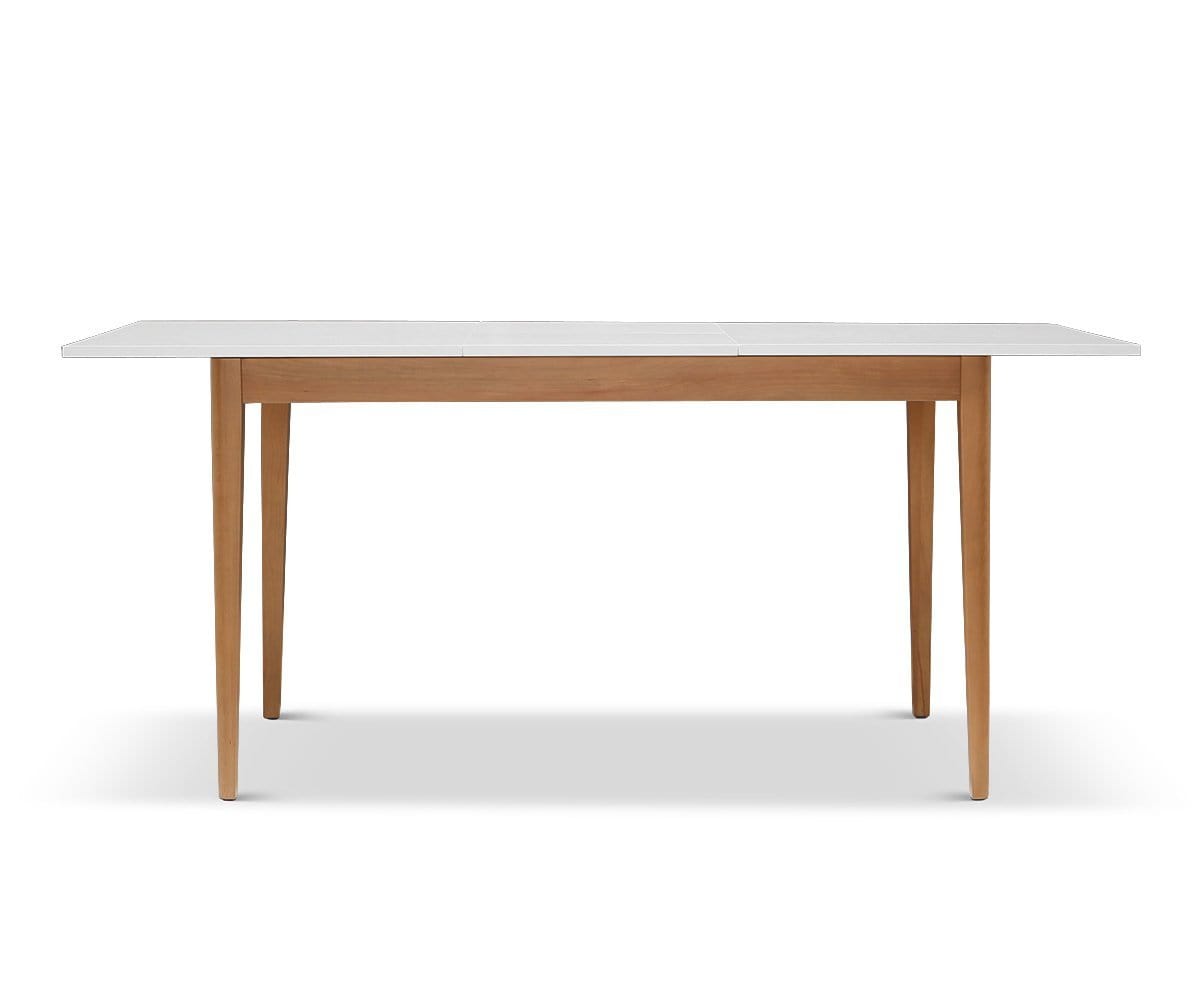 The Eptri rectangular extension dining table brings the minimalist elegance of Scandinavian design to your dining room. Tapered legs and a slim apron support the contrasting white table top for a unique two-tone look. Included extension leaves ensure plenty of space for surprise guests.