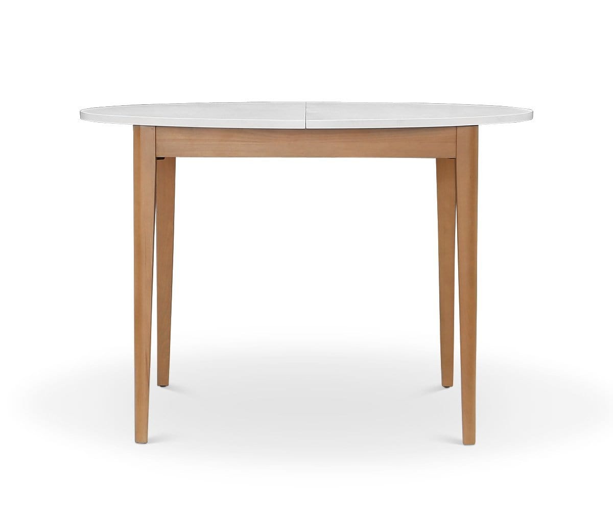 Choose the Eptri round extension dining table for smaller spaces. Tapered legs and a slim apron support the contrasting white table top for a two-tone look that is distinctly Scandinavian. Included extension leaves ensure plenty of space for surprise guests.