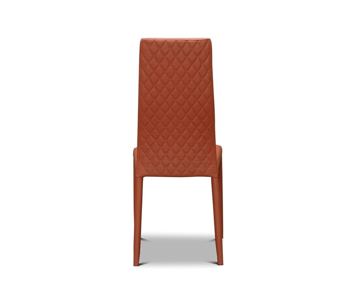 The Evelina quilted dining chair adds a dash of femininity to modern styling. Luxurious quilted upholstery surrounds the durable metal frame for a softer look. The high, sloping backrest ensures hours of comfort.