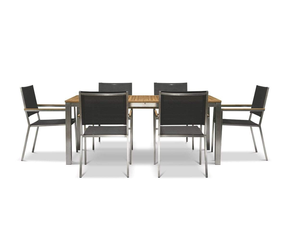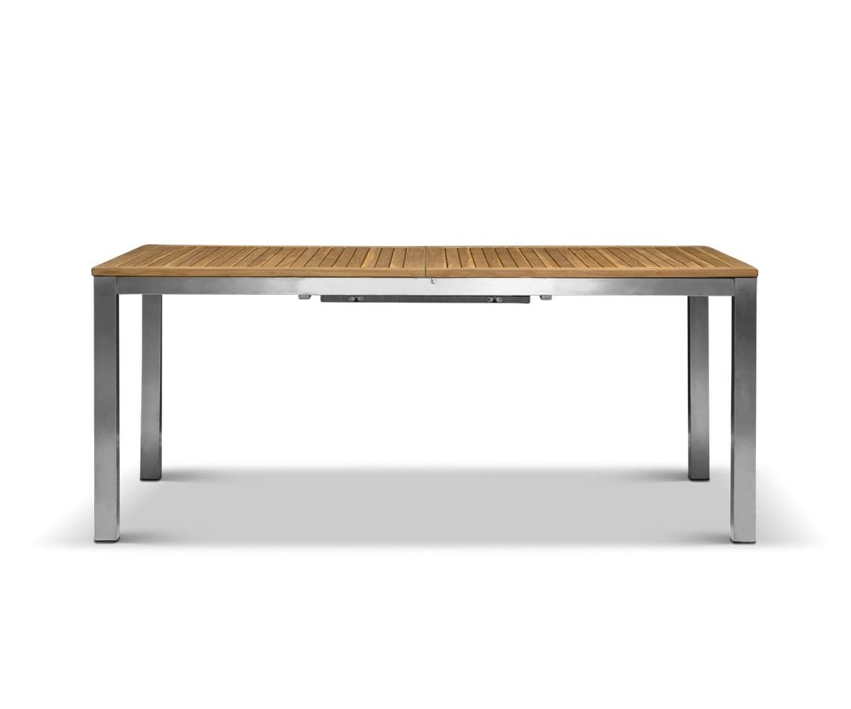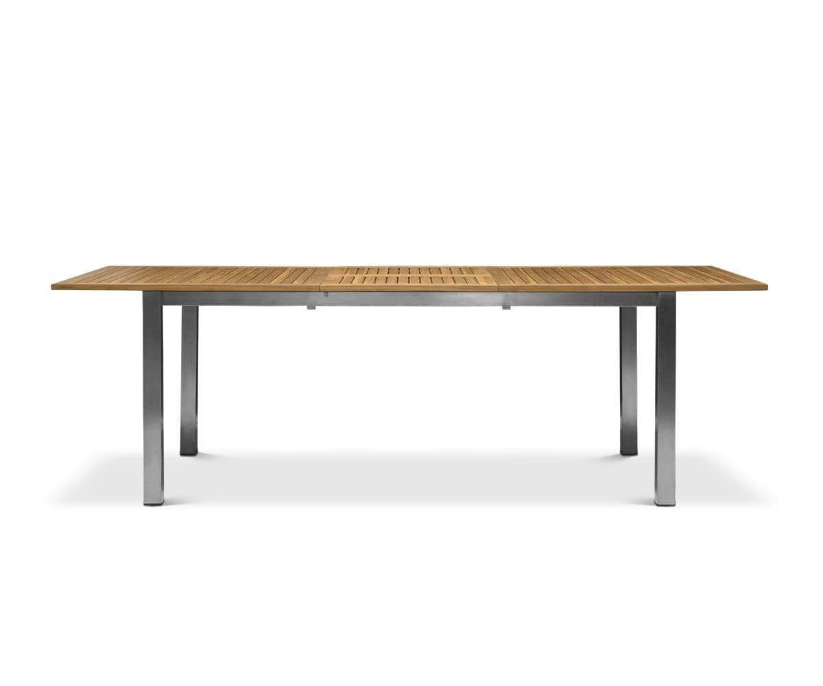 BBQ season requires it: the Farino extension dining table! The slatted top is crafted from natural teak, which boasts superior longevity and resilience to the elements. Stainless steel legs add a modern, angular aesthetic and plenty of durability. Best part? Use the extra leaf to extend up to 94.5" when more guests arrive.
