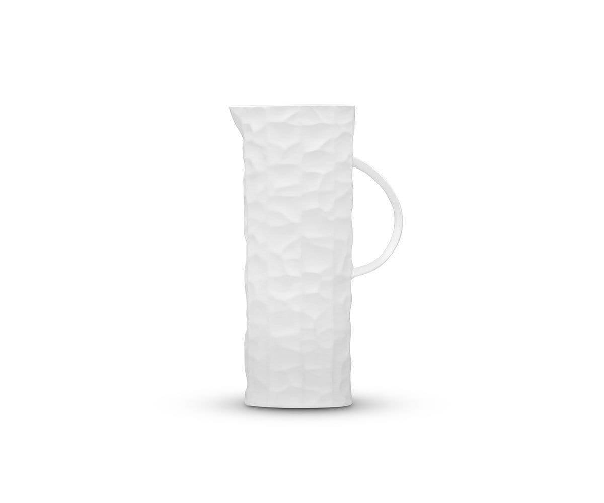 With the Fusa water jug, serving beverages is an art. This ceramic jug has a minimalist cylindrical shape with a delicate handle and spout. The crackled texture and matte finish create a quaint feel.