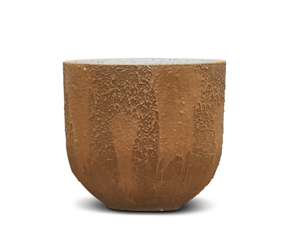 With a distressed brown finish, the Hindri planters bring striking contrast to vivid foliage. Made from a faux-concrete composite, these durable planters offer the look of concrete without the weight. Frost-resistant and waterproof, they are suitable for indoor and outdoor use.
