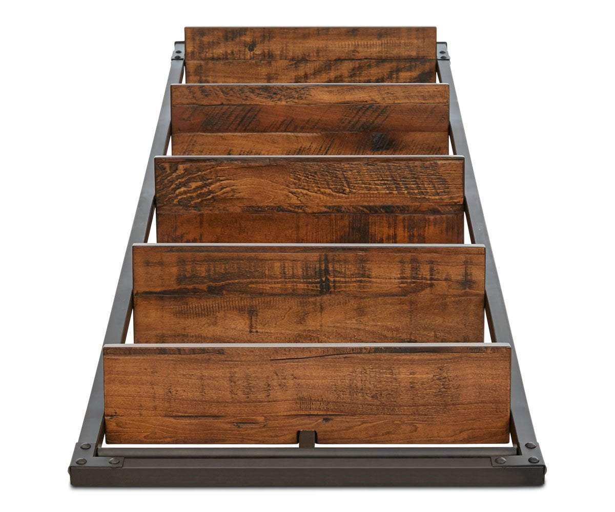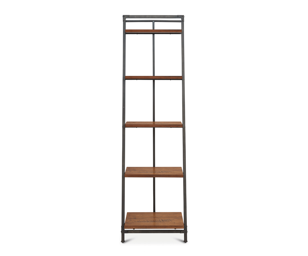 Introduce a rustic industrial style into your home with the Insigna leaning bookcase. The minimalist design features a iron frame and solid American poplar shelves.