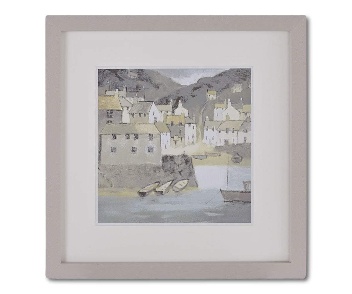 Journey Landscape I wall art suggests a visit to a quaint little fishing village. Set in a quiet Scandinavian seaside town and washed in neutrals, this piece evokes serenity. The creamy mat adds dimension, while the wooden ivory frame completes the polished look.