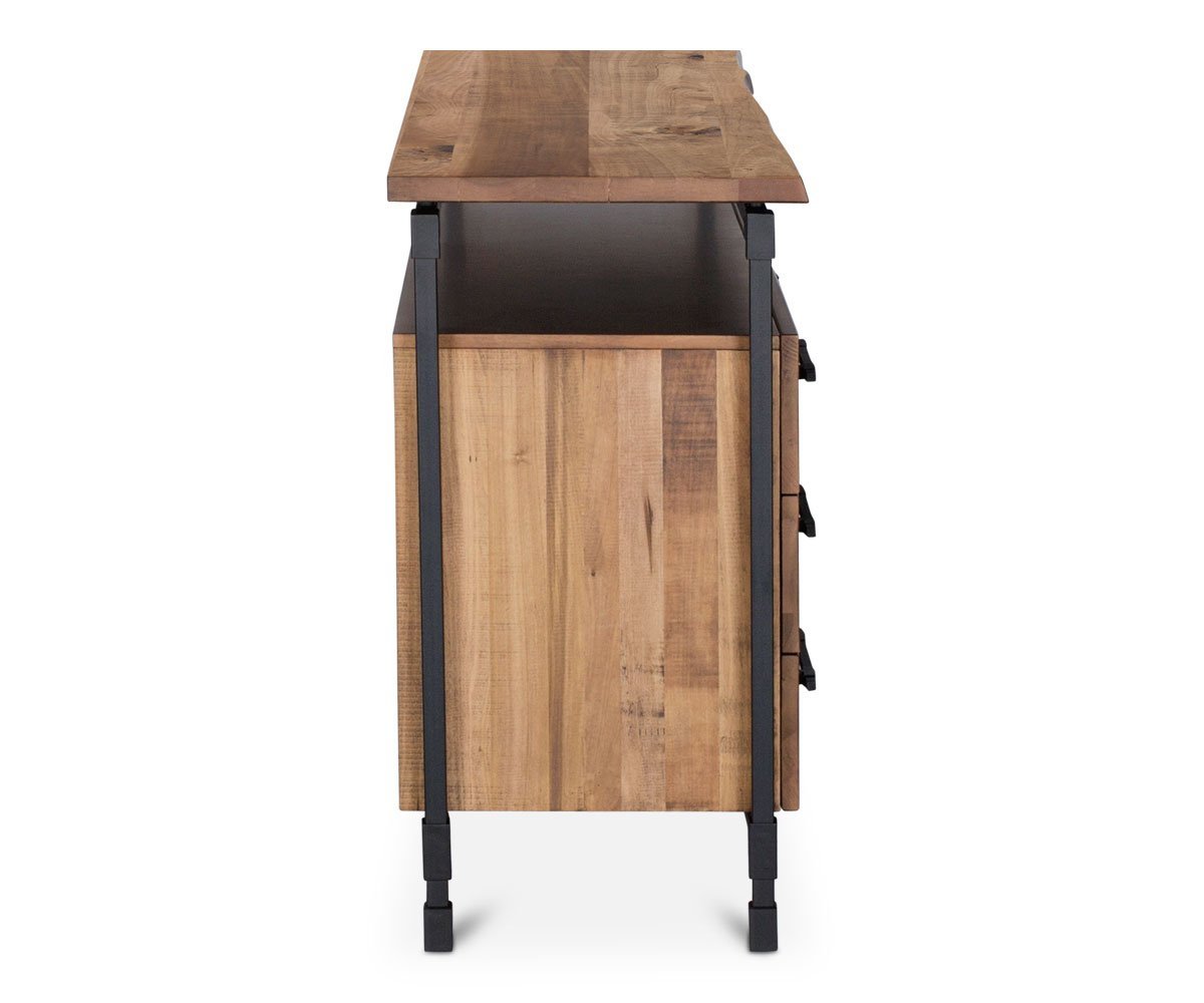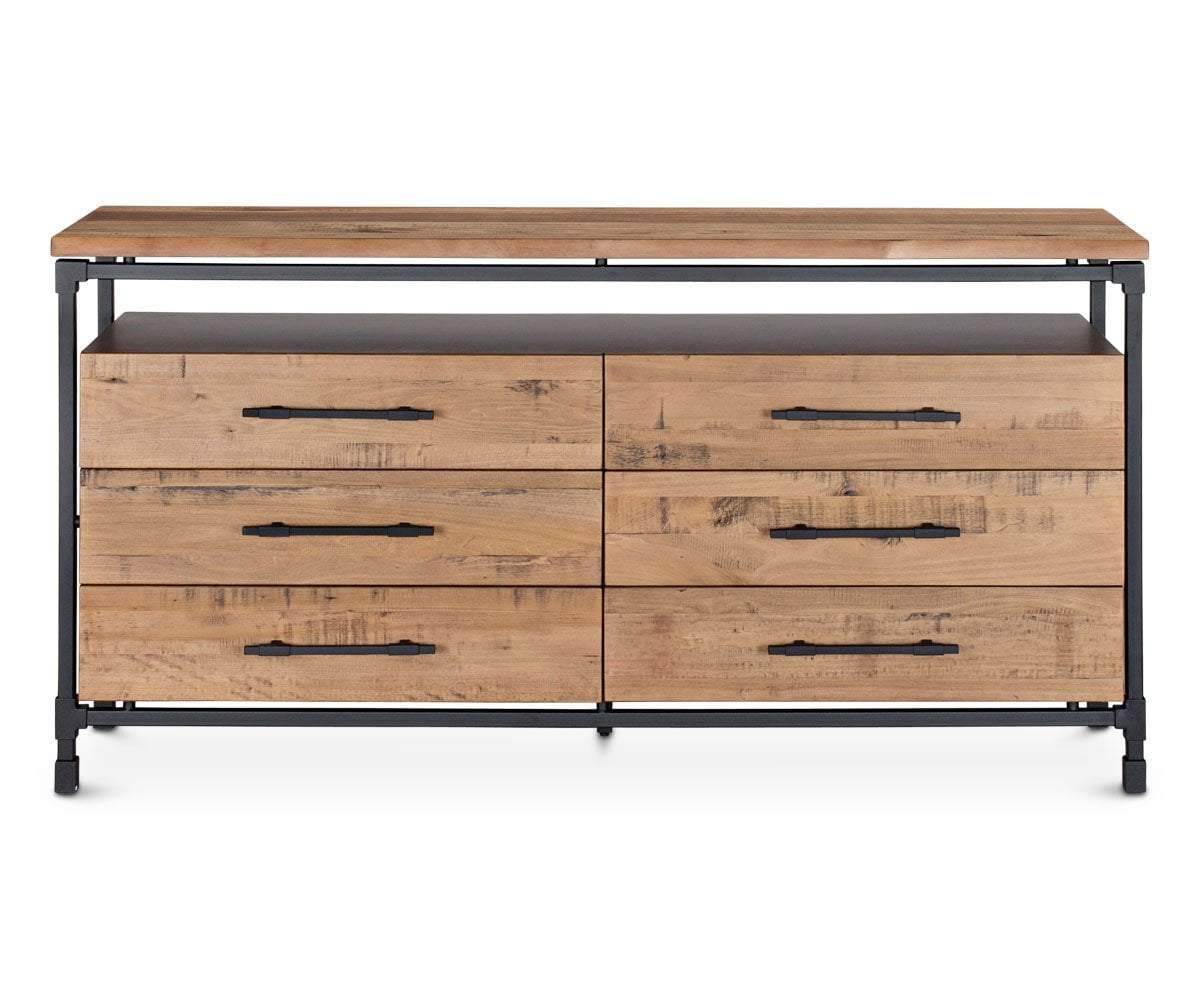 Your stylish clothes deserve a stylish home. Give them the Karsten double dresser, crafted from solid American poplar wood and powder-coated metal. Six large drawers with metal pulls provide ample storage space, and the large surface area is perfect for decorative displays.
