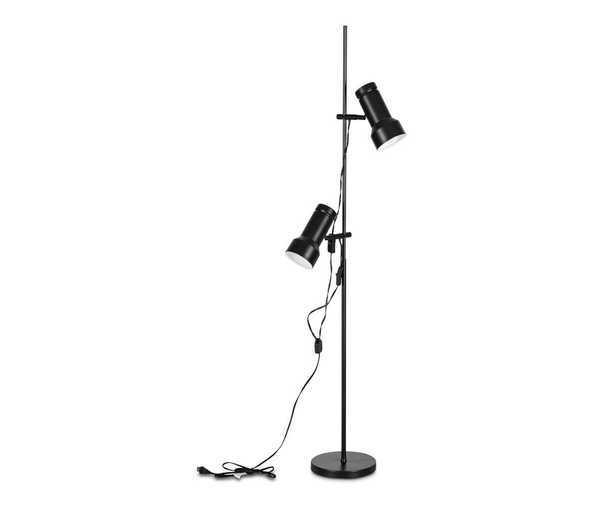 Add focused ambiance in larger spaces with the Klassik floor lamp. It offers a versatile design with ingenious functionality: two individual lamps that adjust to point where you need them. They can also slide up and down the stem as needed.