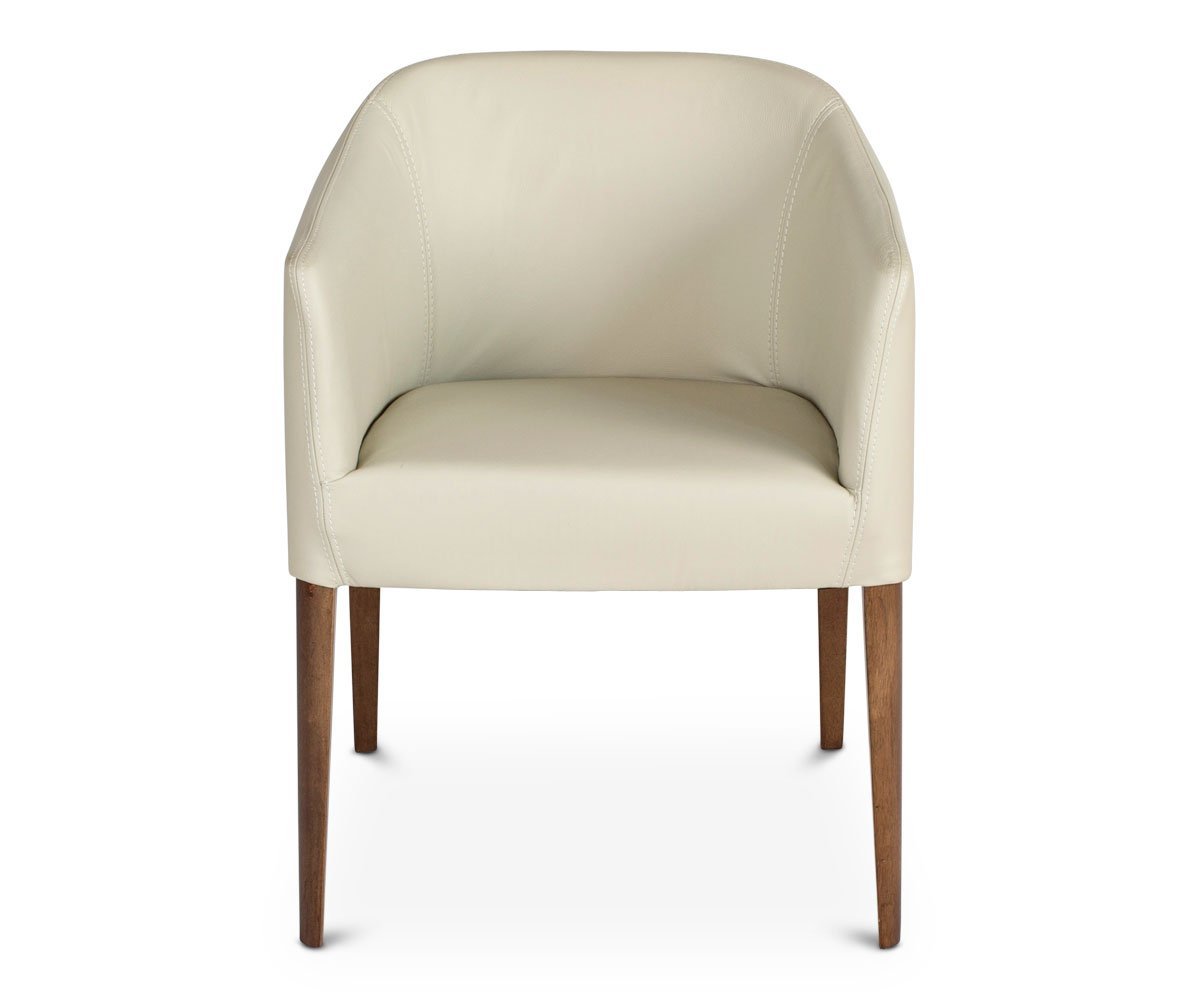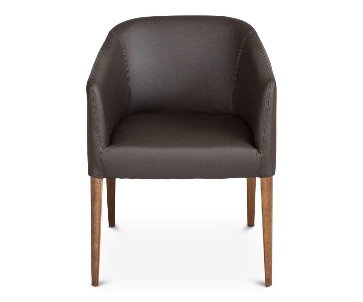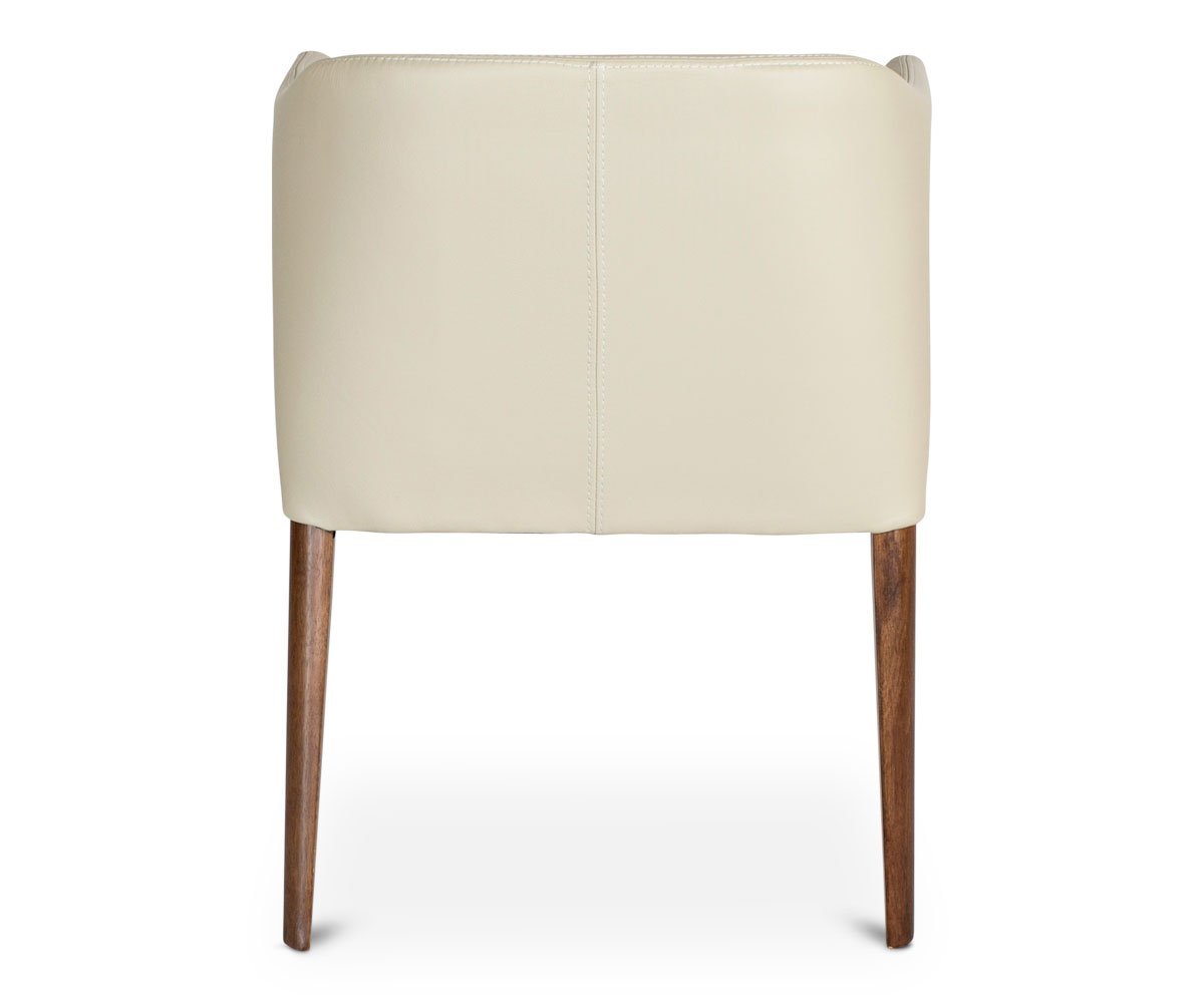 Casually elegant dining rooms will welcome the Lank dining chair. The comfortable bucket-style seat features beautiful leather upholstery and piping. The look is elevated with four rounded angled legs in a venge finish.