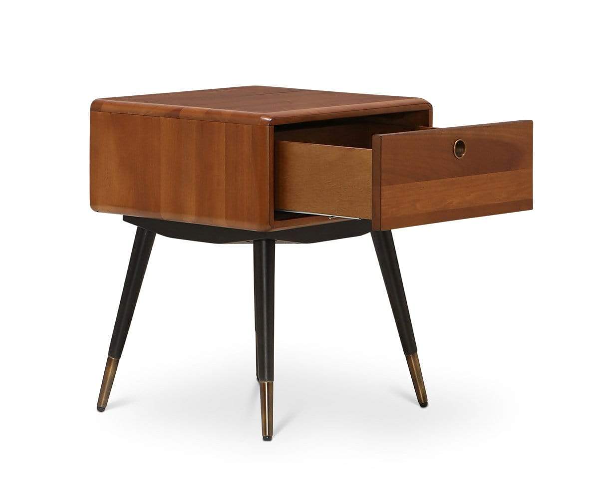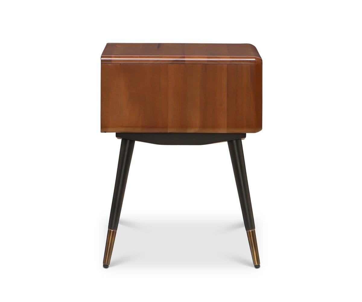 The smallest pieces can have a big impact. Take the Lanson nightstand—it’s artfully crafted from rich solid poplar. A warm walnut stain enriches the look of the grain, while brass drawer pulls and brass-capped legs add a decidedly clean, mid-century flourish.