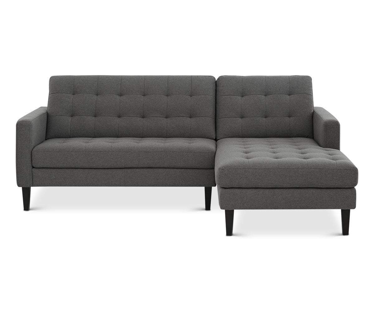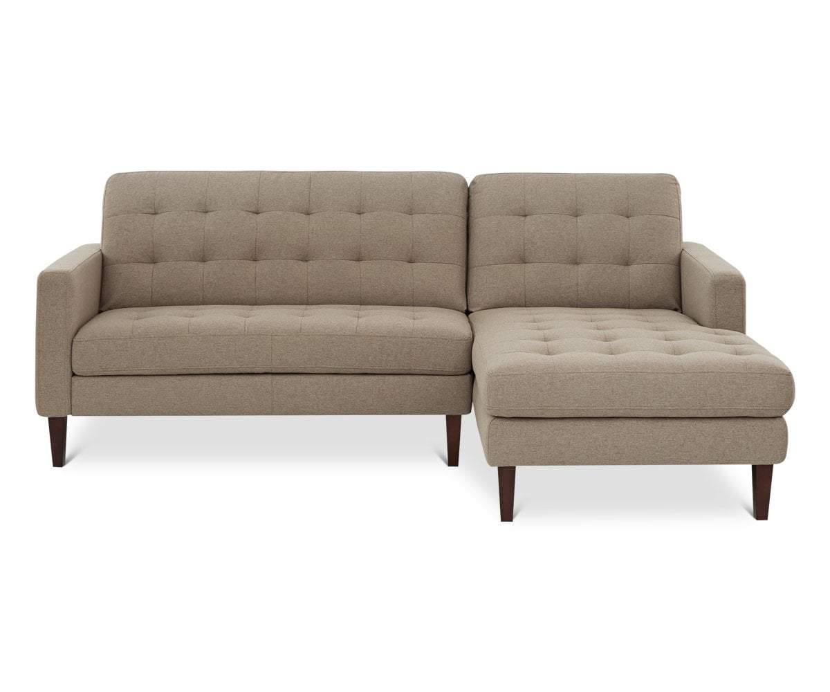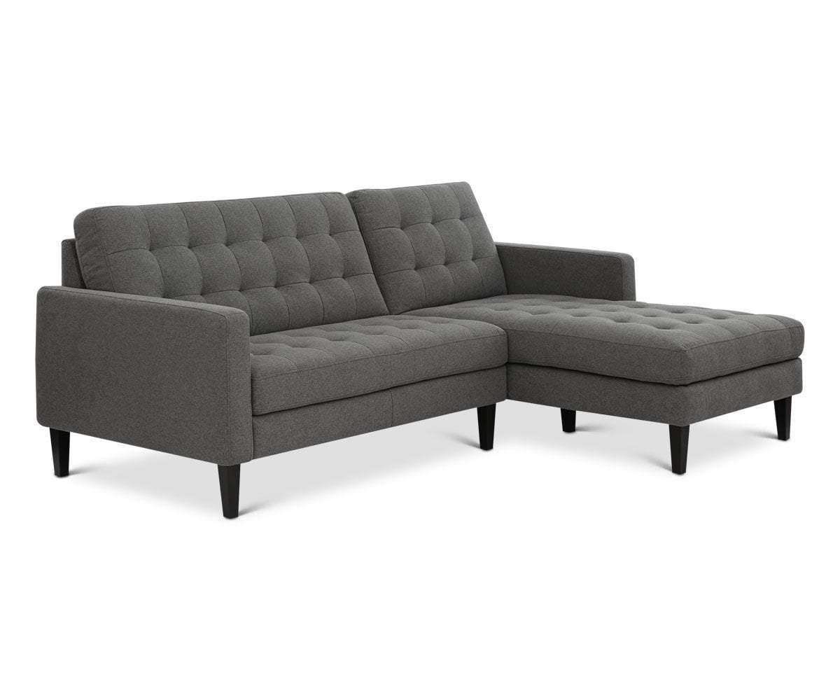 Relax into comfort in sophisticated style with the Laura chaise sectional. The understated profile allows attention to focus on the traditional tufting of the cushions complemented by the sleek modern lines of the frame. Attractive from every angle and top-to-bottom, the tapered legs complete the look.