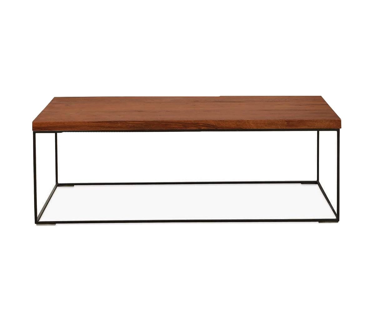 The Leende coffee table boasts mixed materials and simple lines which create a slim silhouette that makes a bold statement. While modern by design, the solid European oak top and strong steel frame give it a refined rustic industrial vibe.