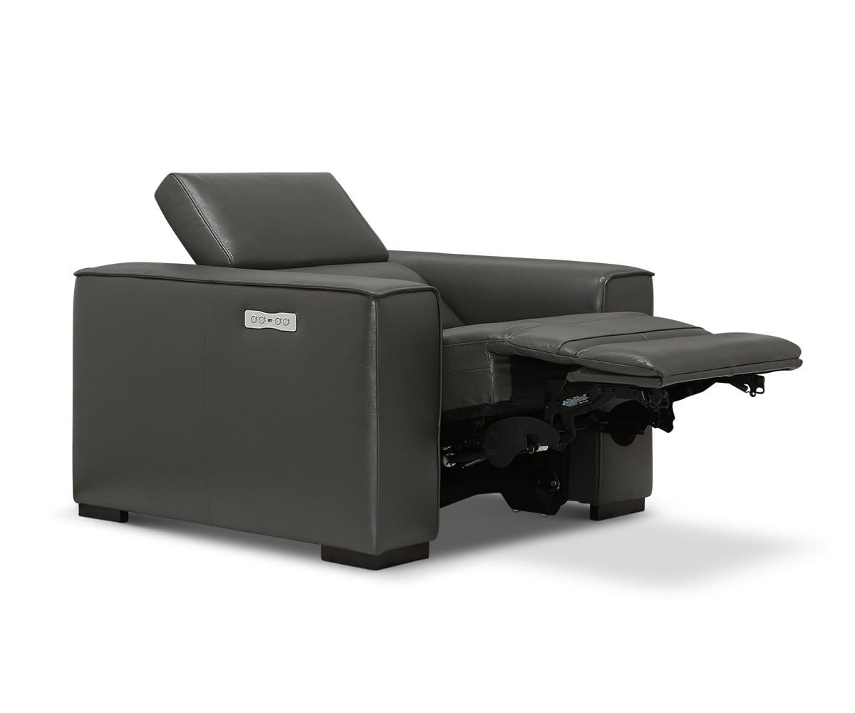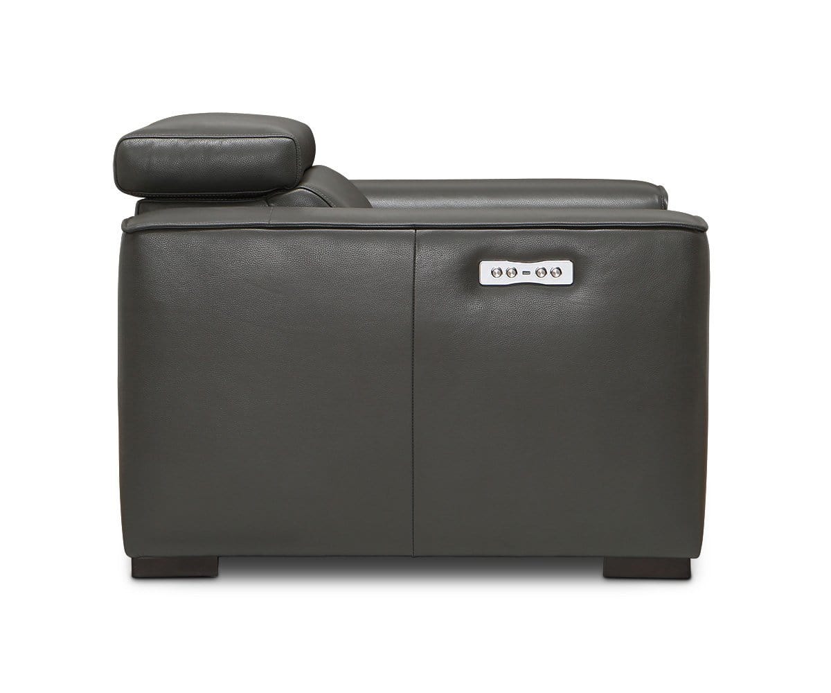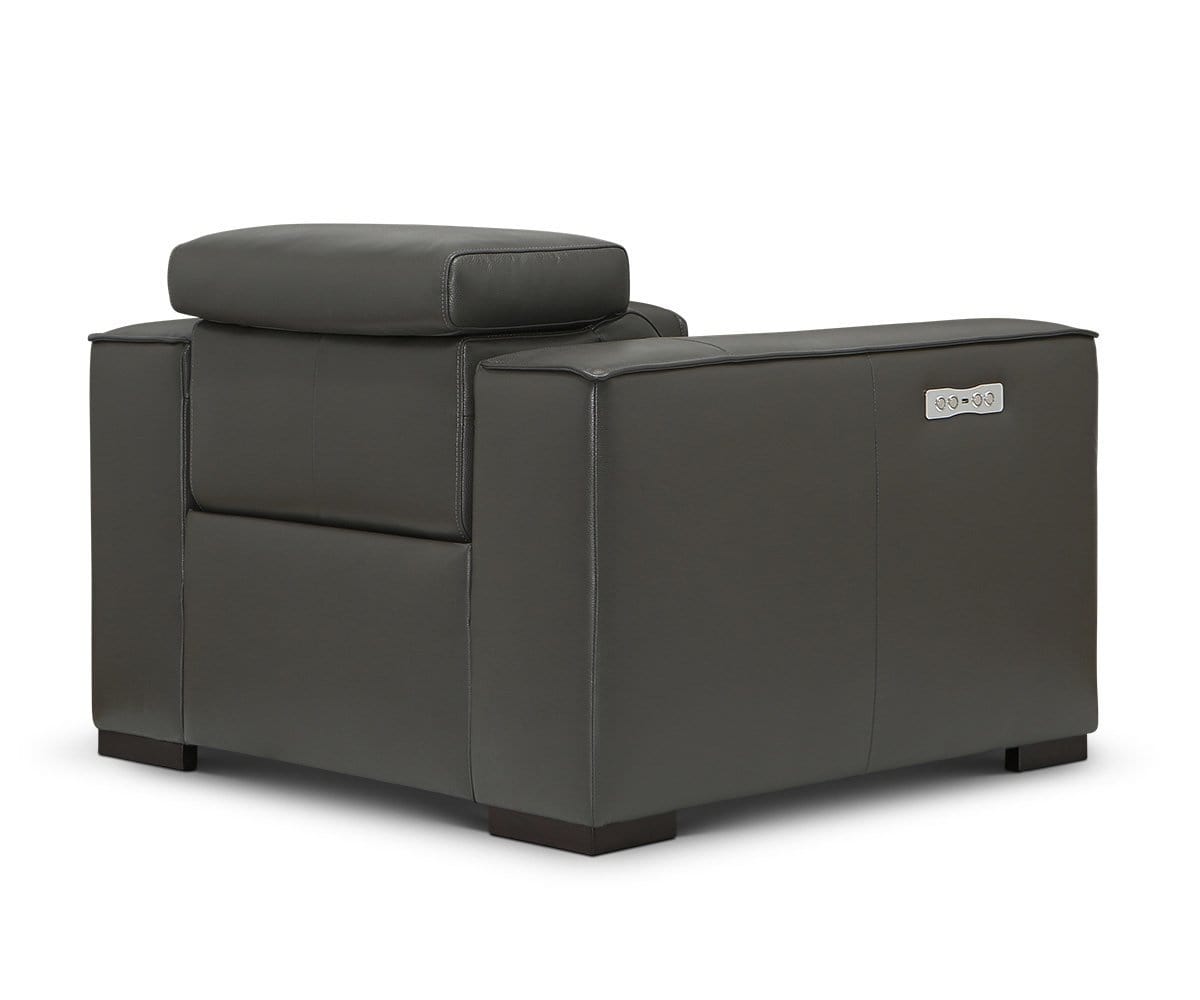 The signature comfort of the Lewen collection is now available in a sleek power recliner. The combination of luxurious top grain leather and plush cushioning provides seating you can sink into blissfully. The power reclining seat and power adjustable headrest let you customize your comfort level, while built-in USB ports charge your device while you kick back.