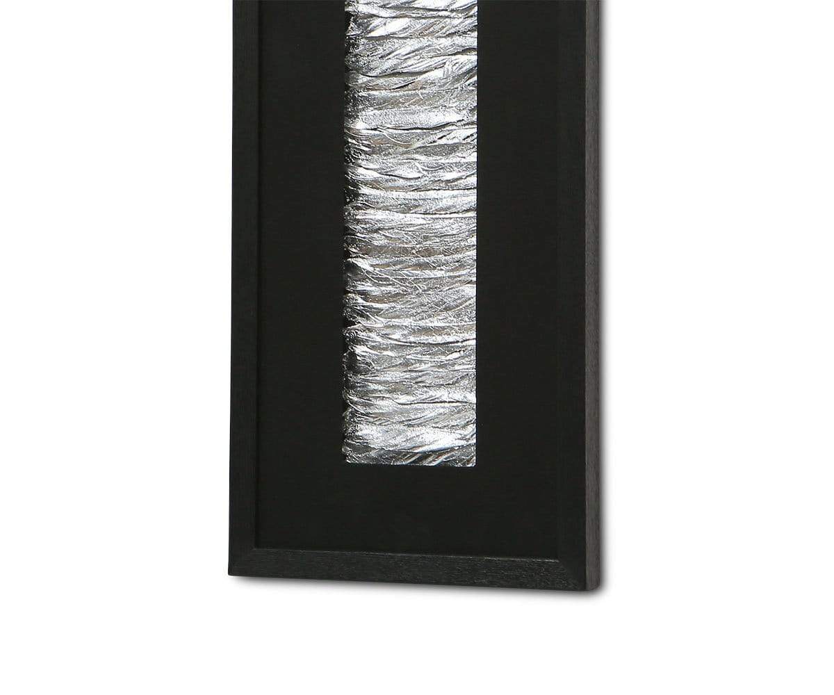 The Linear Strength Art is the ideal objet d’art for any room. An upscale wooden shadowbox houses unique art made from metallic painted goose feathers.