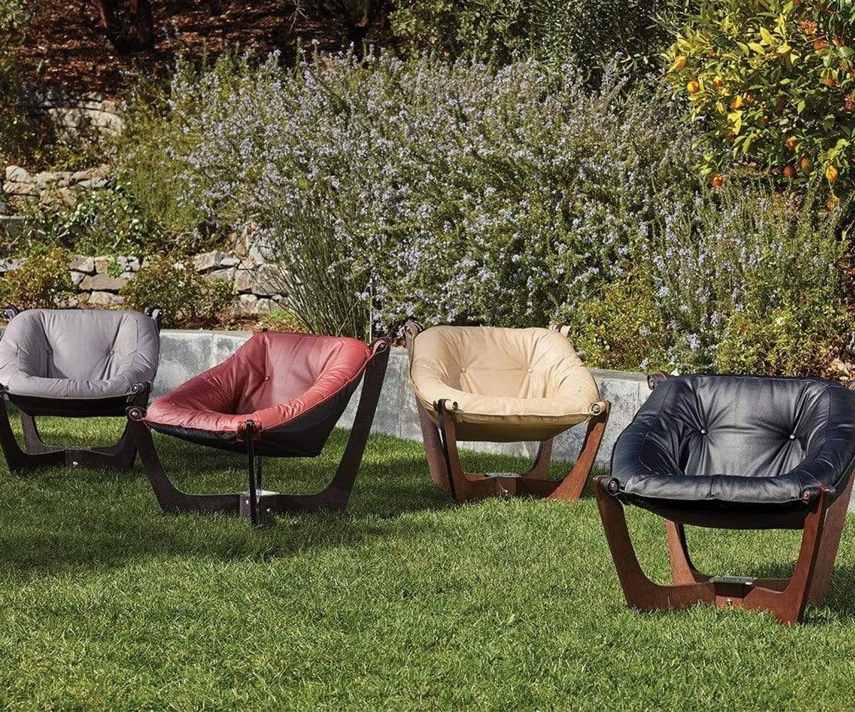 Back by popular demand, the iconic Luna low back chair is sure to become your favorite resting spot at home. Norwegian designer, Odd Knutsen first introduced this unique accent piece in 1970 when it became an instant classic. The enduring design features the strongest and finest materials, from the crossbar frame to the soft, subtle leather of the padded seat that adapts to each person. Its distinctive floating suspension cradles you in comfort, encouraging you to take off your coat and stay awhile. Create the best combination for your decor by choosing the seat cushion in your preferred color. Then, include the Luna ottoman (sold separately) to further extend your level of comfort. Not intended for outdoor use.
