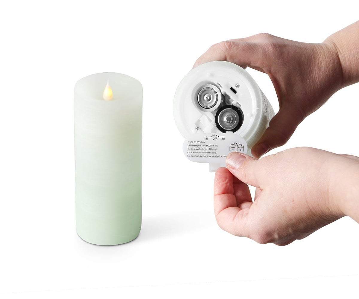 Lys flameless candles give you the warm glow of candlelight without the worry of an open flame. Each realistic candle in this set of two features an authentic wax exterior with a flickering, moving flame. Enjoy the ease of these beautiful battery-operated additions to your home decor by setting the automatic timer to 4 or 8 hours of light. For different hours of operation and to select the dimmer or flicker features, simply use the included remote control.