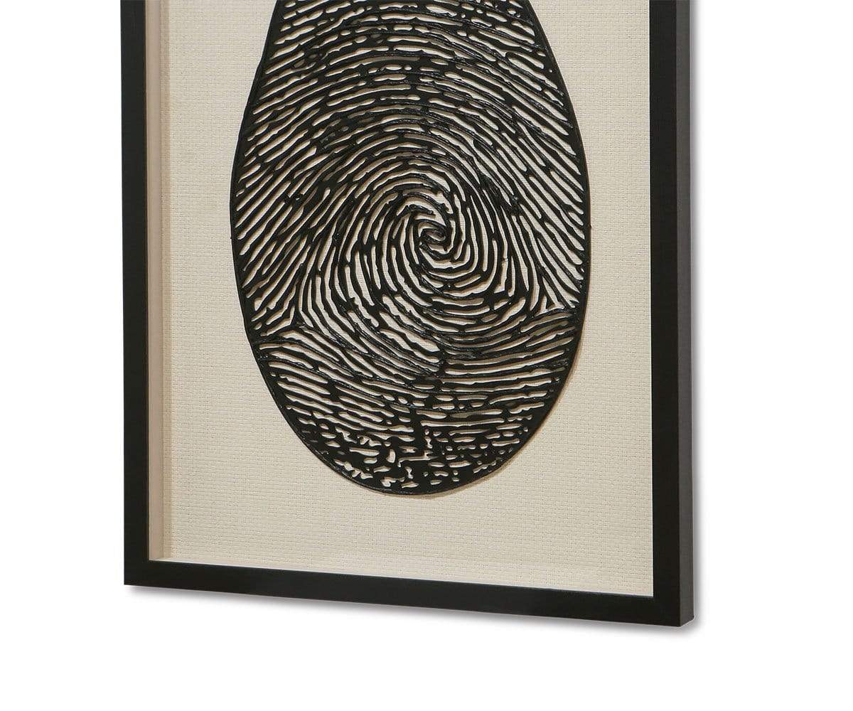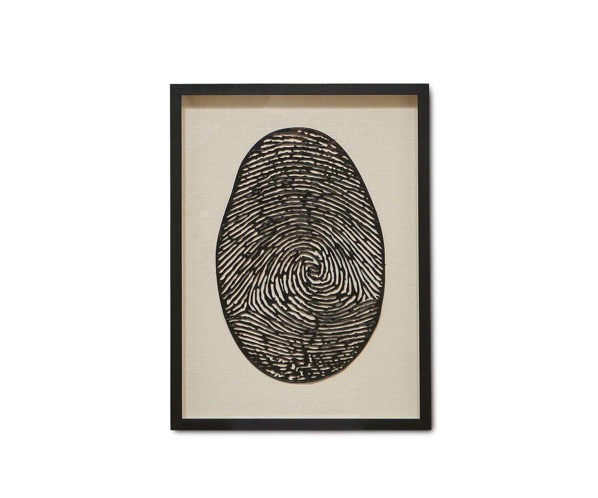 The Magnified Identity Art takes a simple fingerprint and magnifies it to create striking visual interest. A wooden shadowbox houses this unique art, made from skins of paper mulberry and paper pulp.