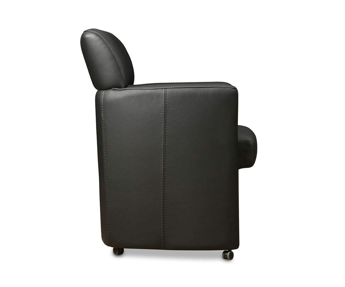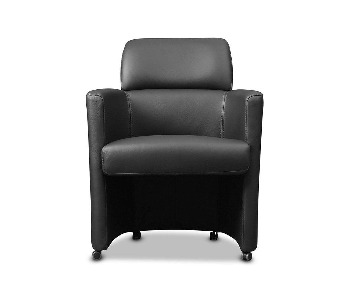 The versatile Mainio caster chair will have you dining or meeting in more comfort and style than ever before. Fully upholstered in leather, this seat steals the show, and rightfully so. Its unique design provides padded, wraparound support with slim, curved arms and slightly tilted backrest, finished with casters, instead of fixed legs. From dining space to conference room, this mobile seat makes coming to the table easy and enjoyable.