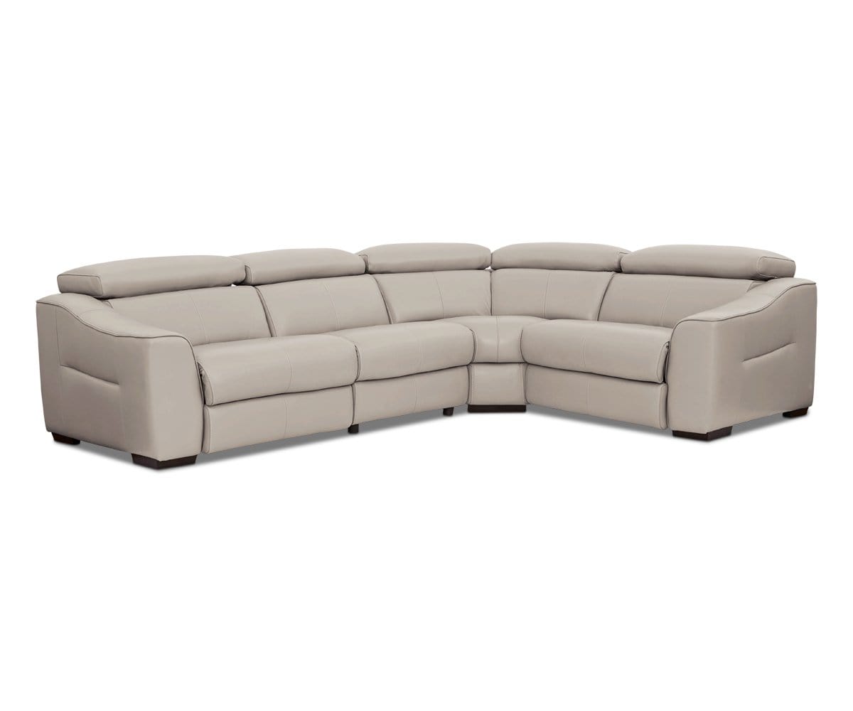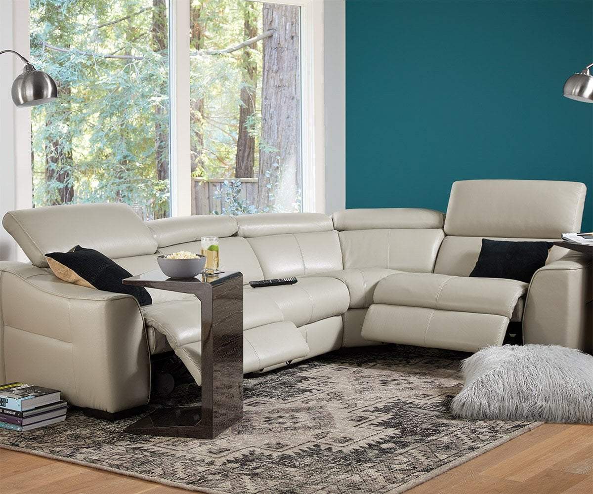 You will experience ultimate relaxation when you bring the Megalo power motion sectional into your living space. Sink into the deep, plush cushions wrapped in luxurious leather upholstery. With its two power reclining seats, adjustable headrests, a cozy corner section and one stationary armless chair, you’re ready to take movie night, gaming or even reading a good book to a new level as you enjoy customizable positioning and maximum comfort.