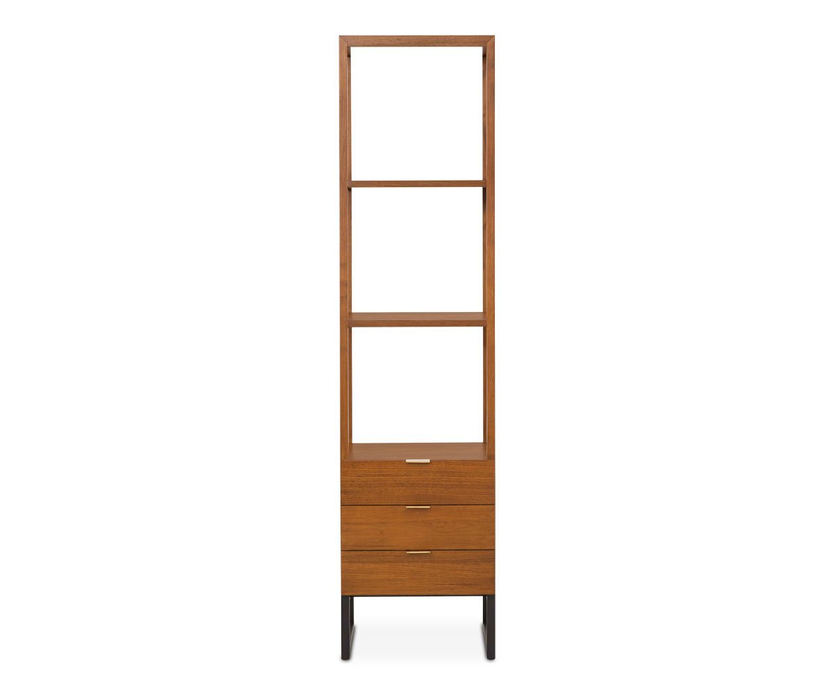 The Meidan etagere is a prime example of form meets function as it balances cool tones of the stainless steel legs in a gunmetal finish with warm tones of the wooden drawers and frame. Place this stylish storage solution in any room of your home to display treasured objects and stow away items you prefer to be protected or out-of-sight. Its mid-century motif ensures it will transition easily if your interior design changes or as trends change.