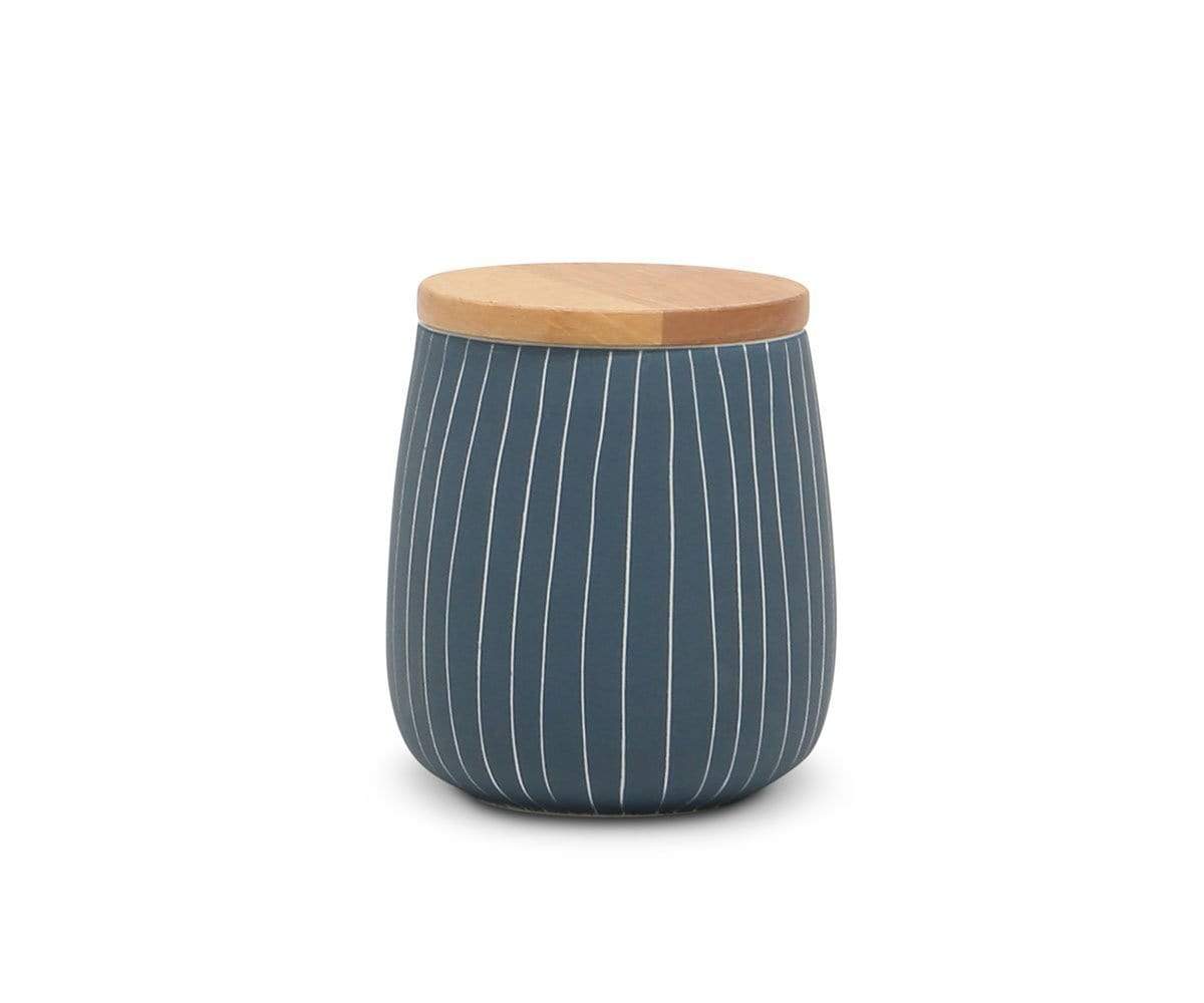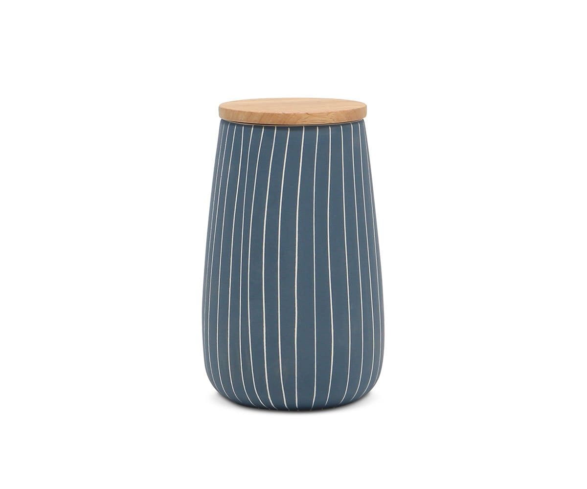 The Messina ceramic jars toe the line between classic looks and modern styling. The blue finish and white stripes inject a touch of beachiness to your space, while the oak lid adds stylish contrast and helps keep contents protected.