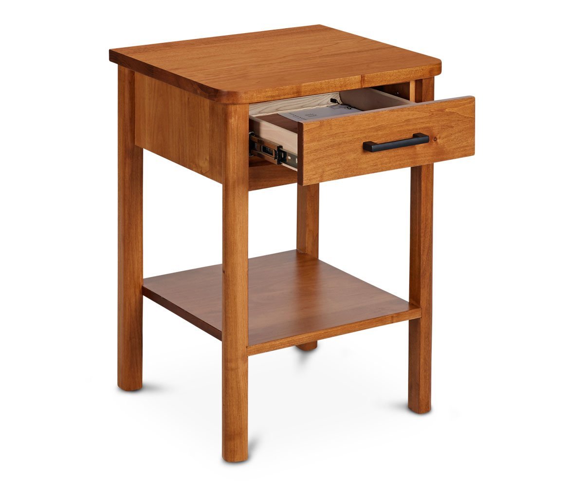 Offering an open-style, the Mia nightstand features a single drawer and single shelf to display and store your essentials. This nightstand is constructed of solid maple with a honey stain that enhance the classic lines of this American-made storage piece.