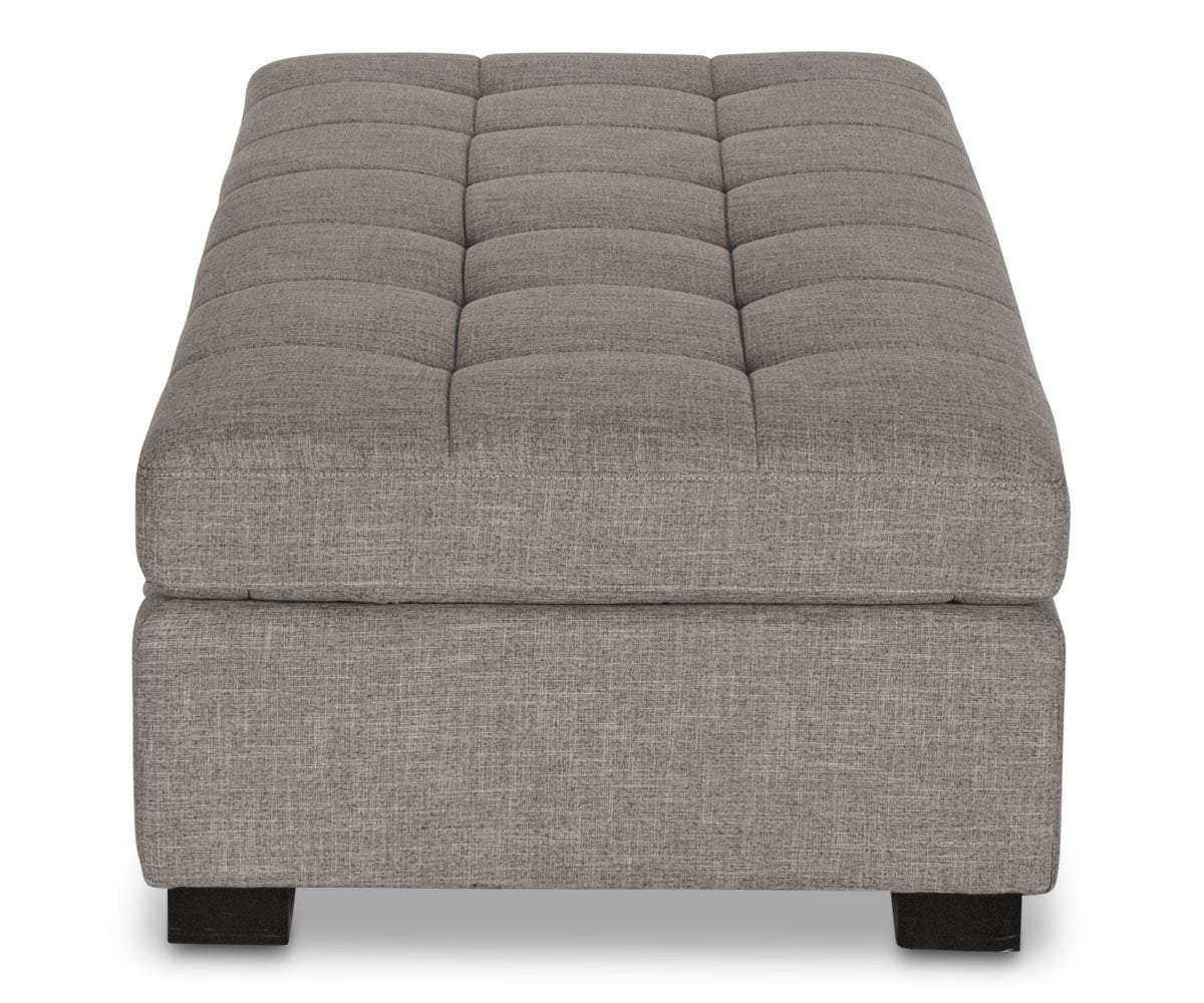 The over-sized Mirak ottoman, featuring button-tufting and wooden feet, is a versatile piece for any living space. On its own, this ottoman can step in as a place to put up your feet or as extra seating, but the ultimate use is pulled up to our Mirak sectional to create a large lounge area.