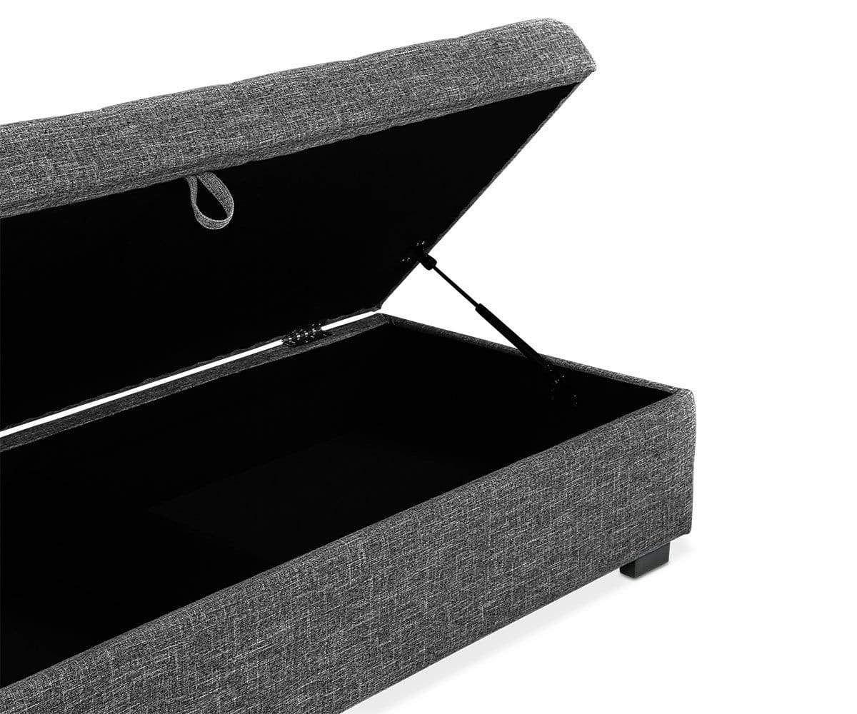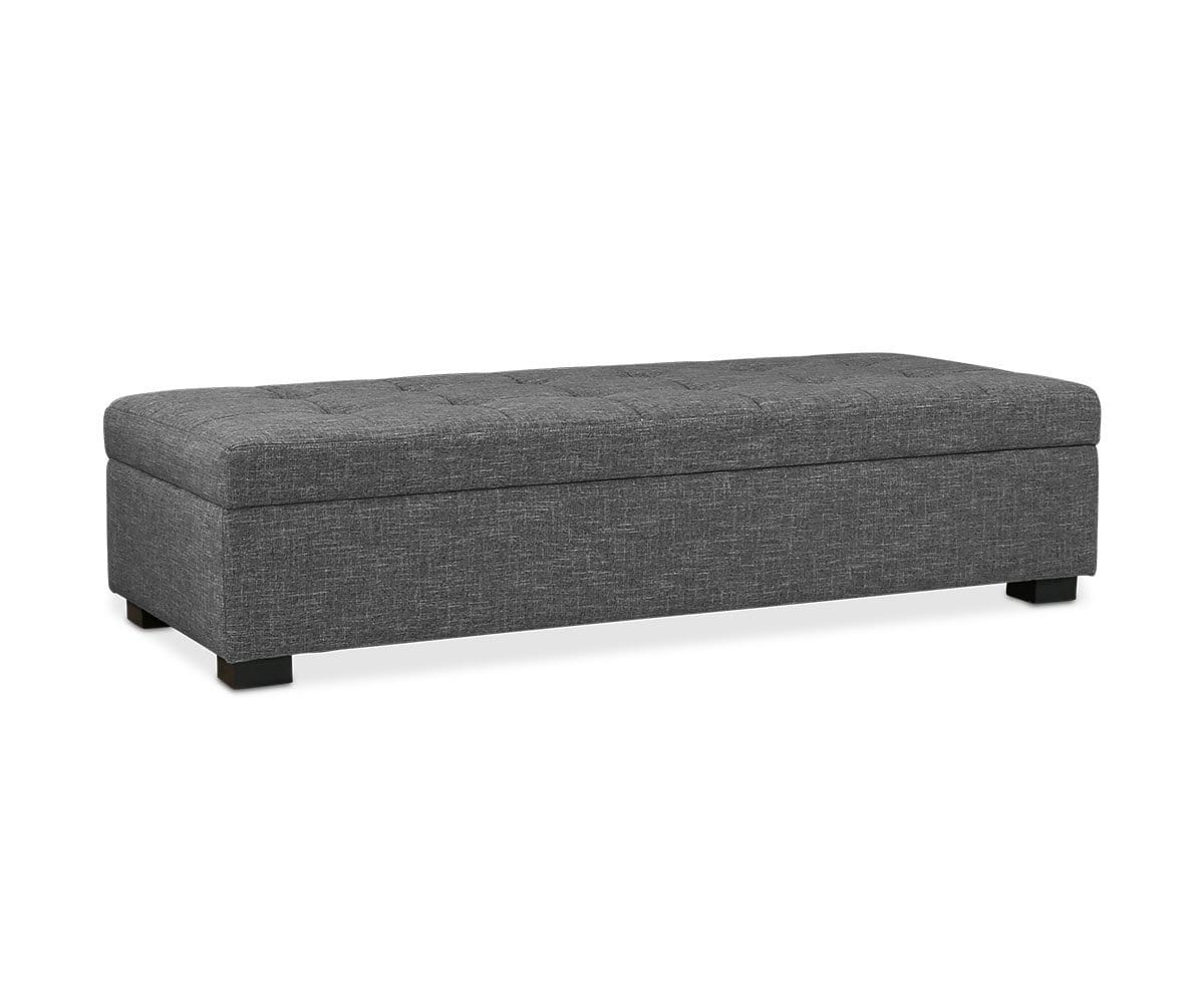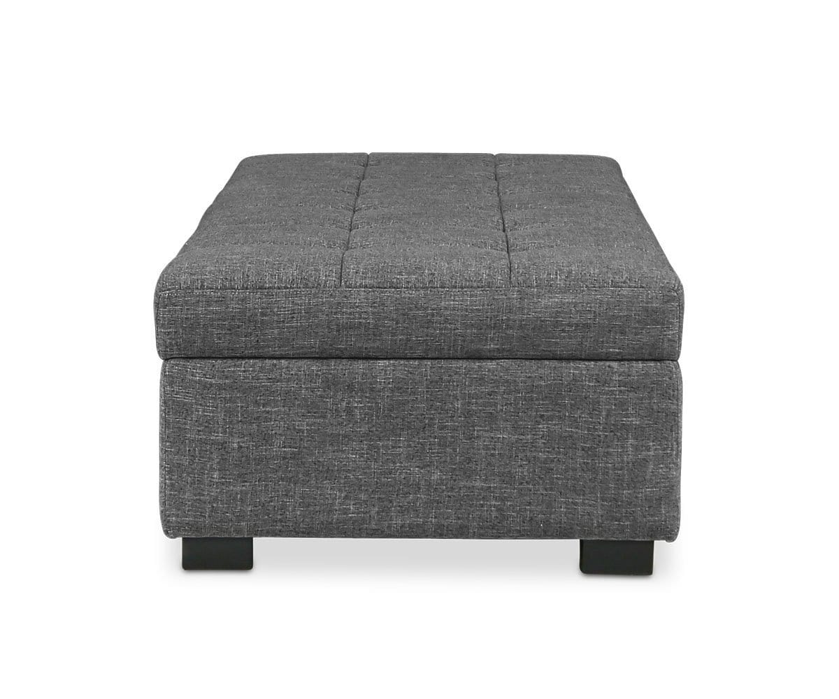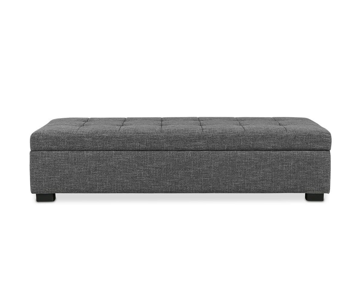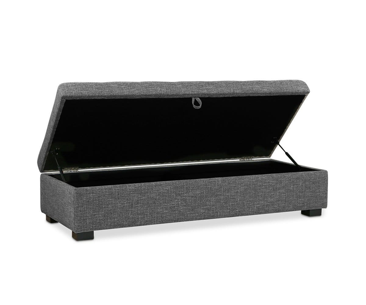 The oversized Mirak storage ottoman is an attractive, versatile addition to your living space. Featuring button-tufting along the padded top, this piece functions as a comfortable seat and place to rest your feet or can easily transform to an accent table with one of your serving trays to hold beverages, remotes and such. Lift the lid with its soft close hinges to reveal massive storage for throw blankets, pillows and more. With so much to offer, the Mirak storage ottoman is the perfect supplement to your current decor or can be placed next to your Mirak sectional to create a large lounge area.