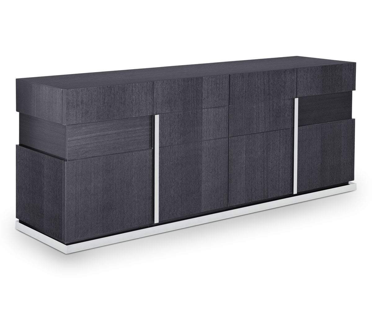 Bring true Italian design into your dining room with our unique Mondiana 4-door sideboard. Expertly crafted in a European grey koto veneer with a protective high gloss finish. The sideboard features a built-in felt lined cutlery drawer for all your special dinnerware and four doors with plenty of room for storage.