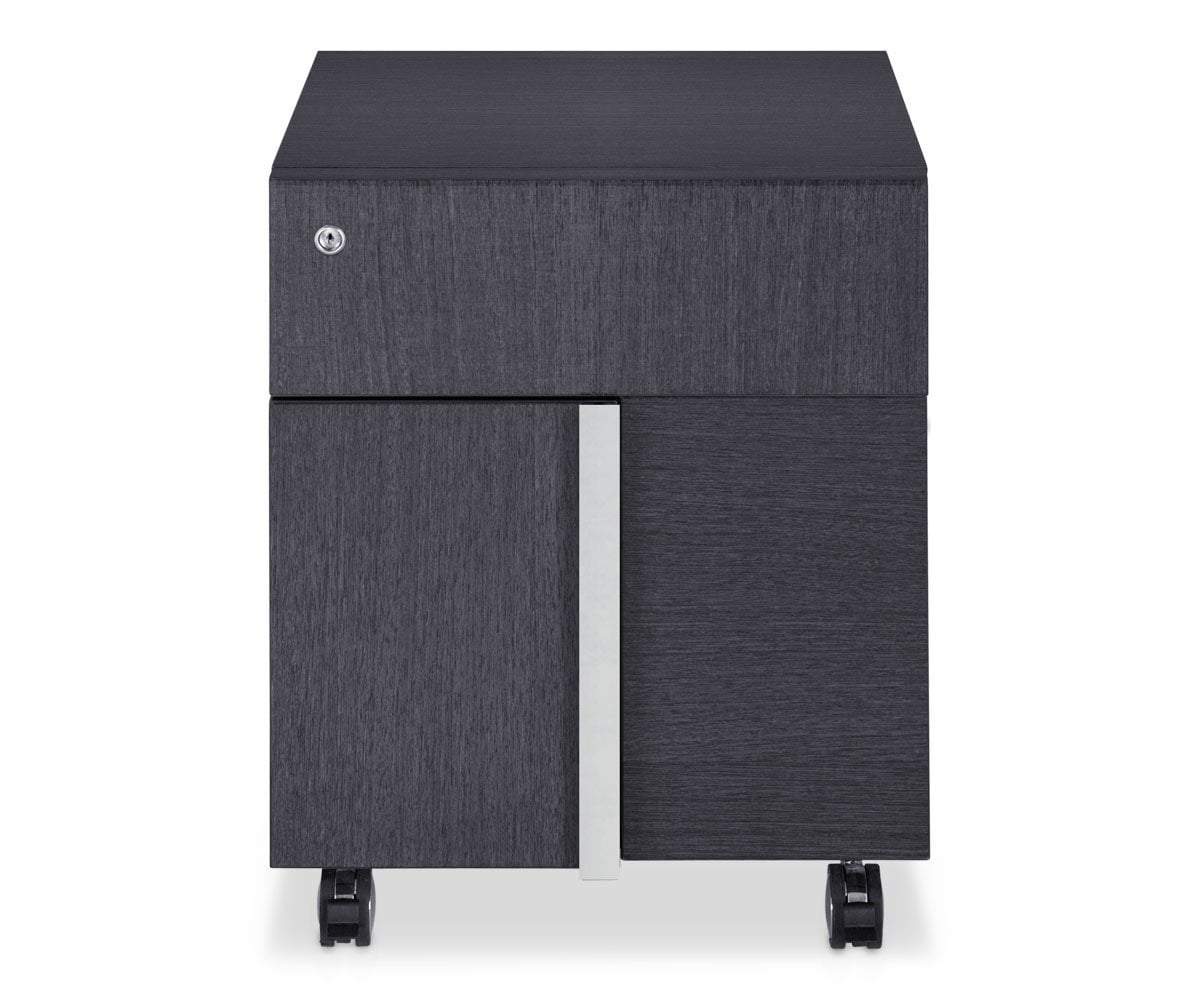 Upgrade your office aesthetic with the Mondiana mobile file pedestal. Crafted in a high gloss koto wood veneer with chrome accents, it displays a chic, modern vibe. The top drawer and lower hanging file drawer both feature a locking system and soft track closures. Casters provide mobility for your convenience.
