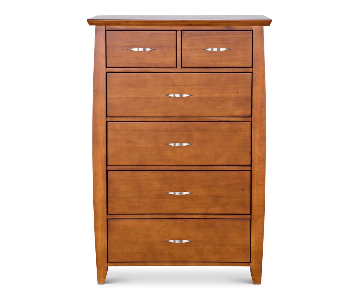 The Pasadena collection is made of New Zealand pine and veneer. The high chest has six drawers with plenty of room for storage.
