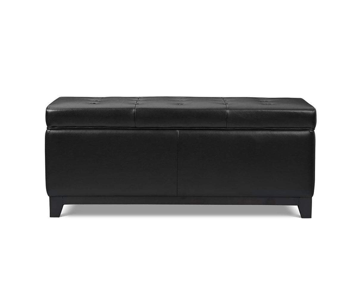 Tufted and tailored in leather, the Pauline storage ottoman is a smart addition to your decor. Use as a footrest for everyone on the sofa or place in the center of your seating arrangement to serve as an accent table. Offer this fully upholstered, cushion topped piece as a versatile alternative to adding another chair to your space and stow away items such as blankets, pillows or games neatly inside.