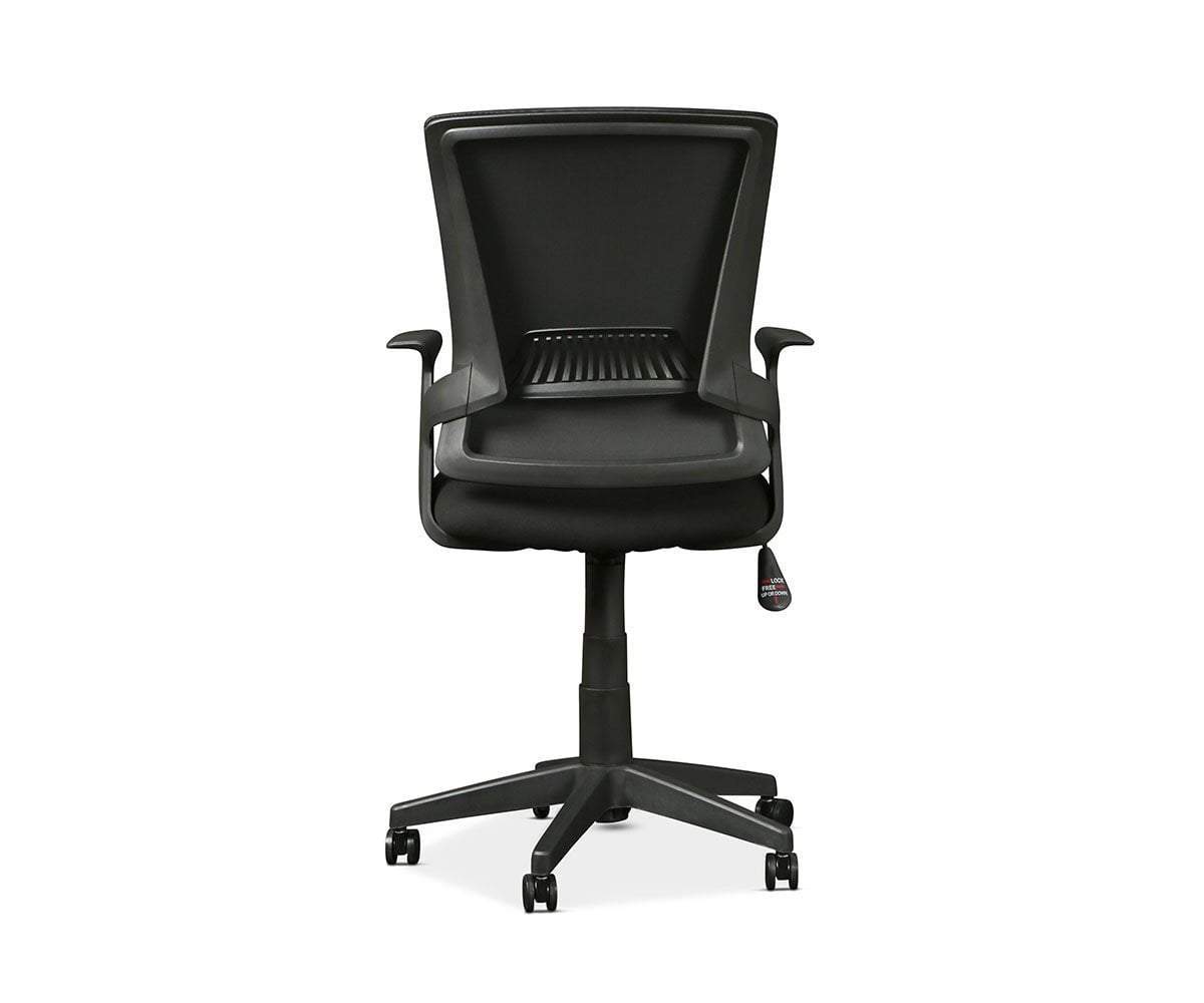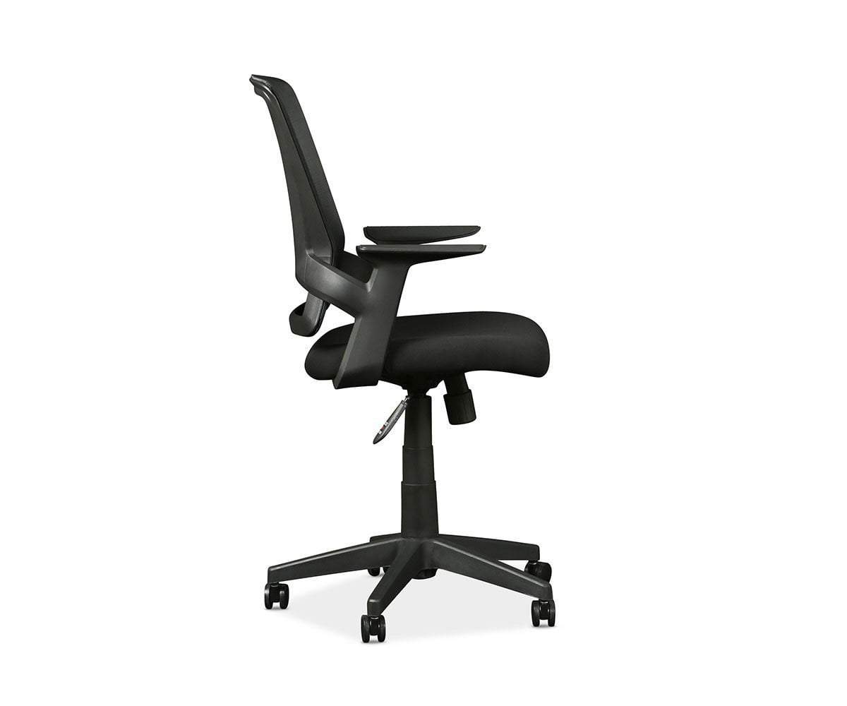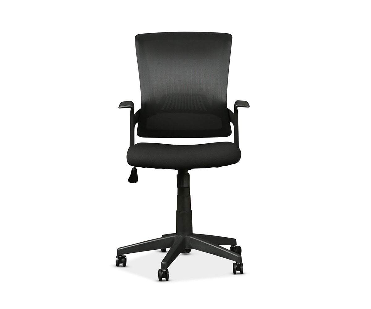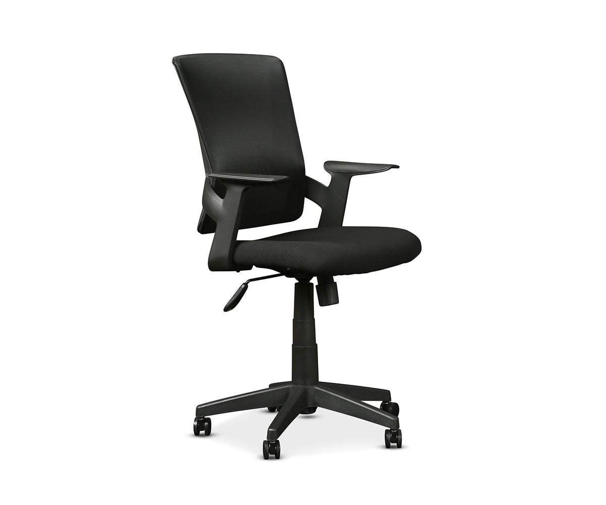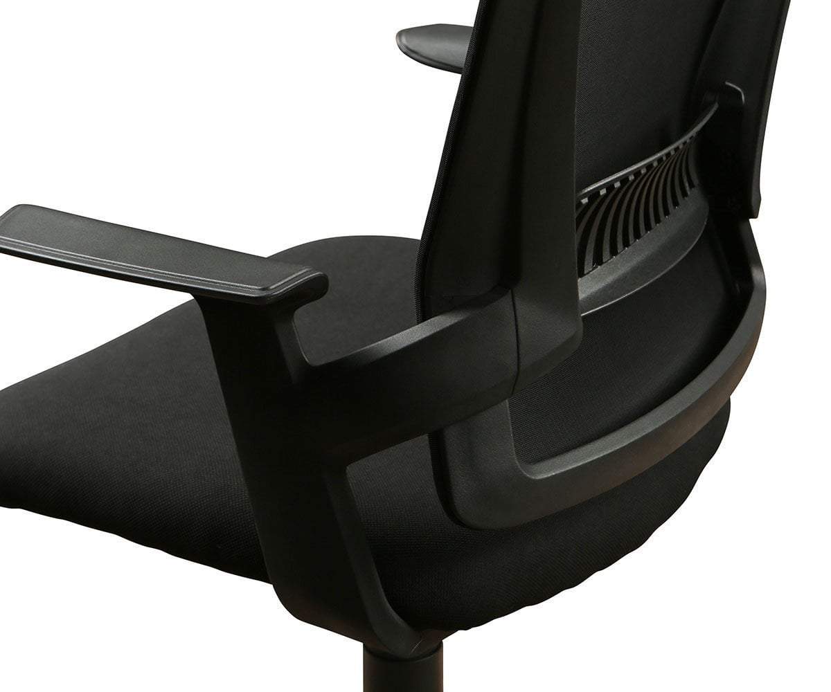 The Pitka chair adds flair to your workspace. Built to provide support and stability on the job, its design is also streamlined and attractive. The sleek and strong black base and frame features lumbar support and fixed armrests, while the padded seat is upholstered in black mesh fabric for comfort and breathability. Enjoy a healthier sitting position with adjustable height, swivel tilt options and casters on all five feet for easy mobility.