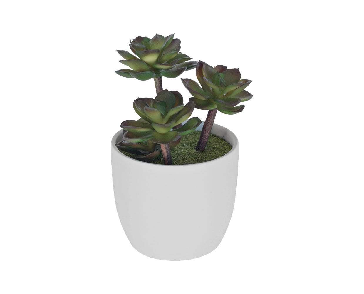 No maintenance required for this lovely little plant. So realistic, it features three individual succulents with soft petals potted in a white planter. Adorn your shelf or table with a fresh spot of green.