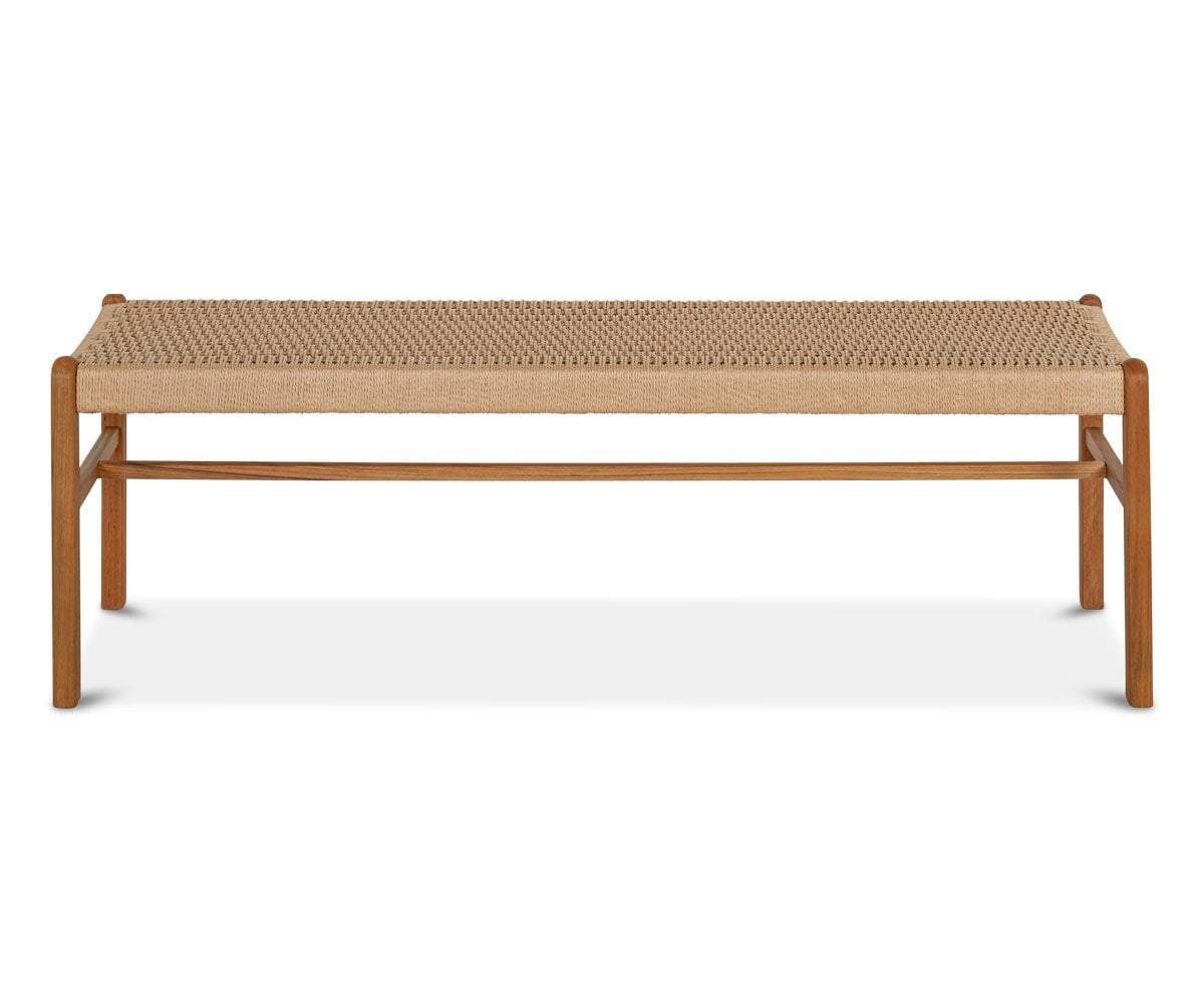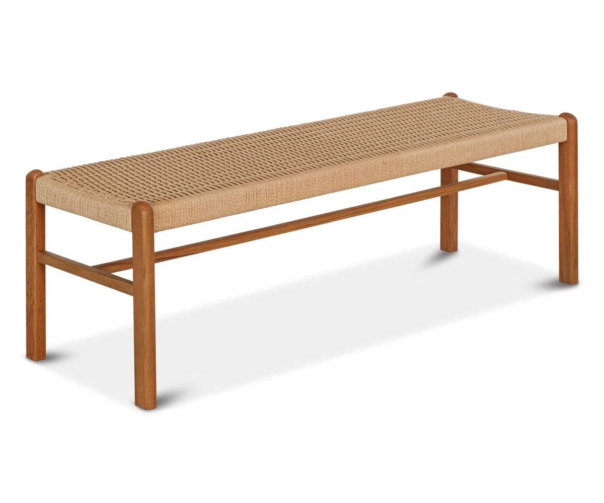 The Raholt dining bench is ideal for adding flexible seating during the holidays and family get-togethers. Beautiful and durable teak wood construction is complemented with a woven rattan wicker seat. With a definite modern influence, it maintains an air of bohemian style.