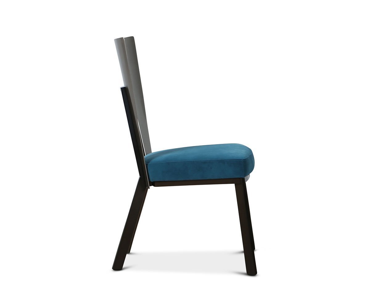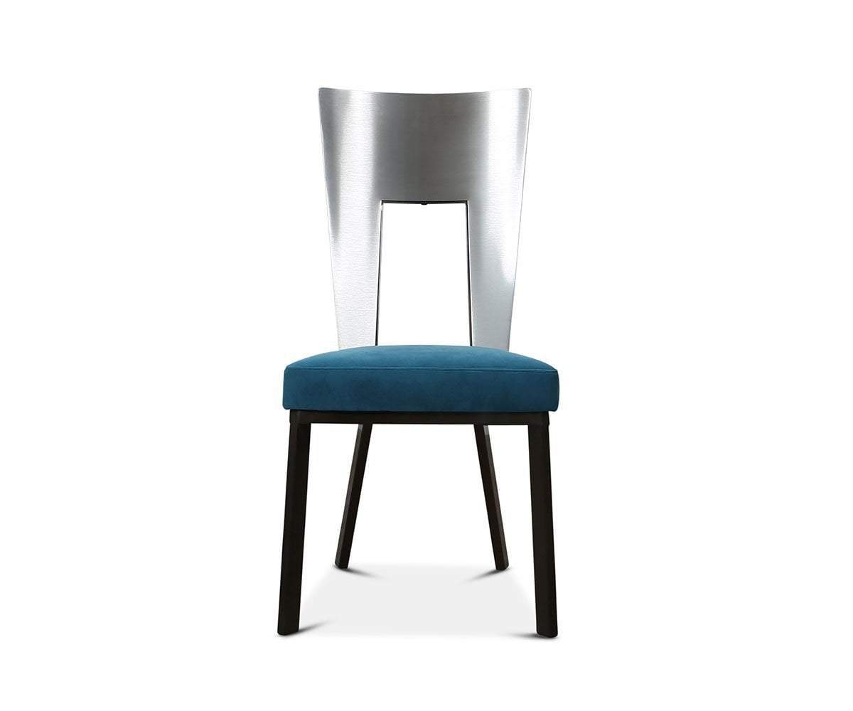 Promoting pure elegance, the Regal dining chair is a lovely balance of materials that results in a stunning decor element for your dining room. Equally as comfortable, this piece made in the USA, boasts a plush upholstered and padded seat supported by the steel legs and frame in a toffee finish. Its sleek aesthetic is completed by the striking polished steel backrest.