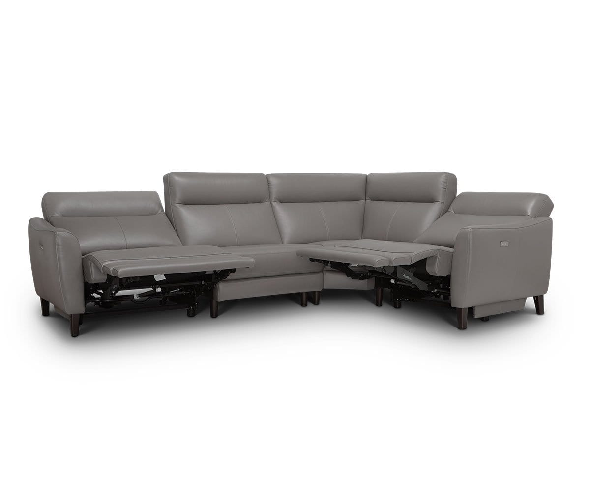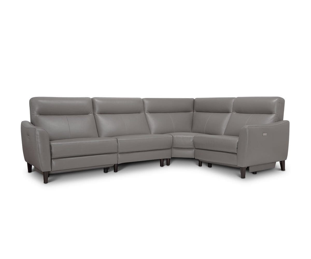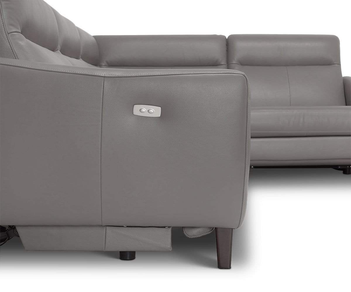 We’ve bridged the gap: stunning design meets extraordinary comfort. The Regine power sectional invites instant relaxation. The fine upholstery features intricate stitched detailing for a clean, contemporary look. Plush cushioning provides dreamy comfort, and power switches let you customize that comfort as you see fit. Solid hardwood legs with distinctive tapering provide a mid-century flourish.