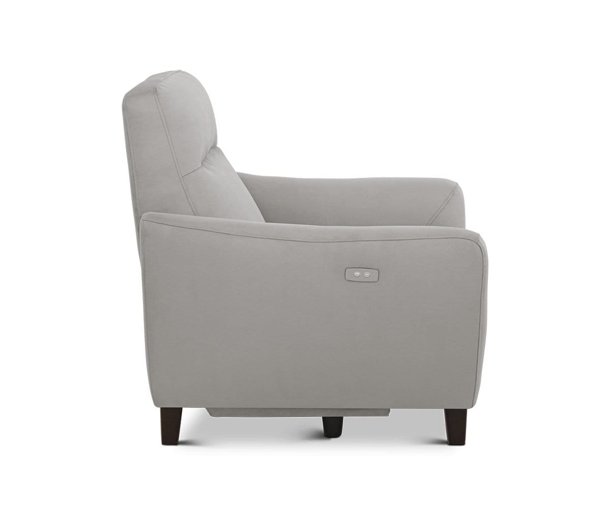 With wraparound comfort and support, the Regine power motion recliner gives you full permission to relax. Enjoy a leisure chair that is both plush and prominent, yet refined enough to fit in without overtaking your space. Expertly upholstered with detailed stitching, it is attractive from every angle. At the ease of a button, adjust to your perfect amount of recline and rest in style.