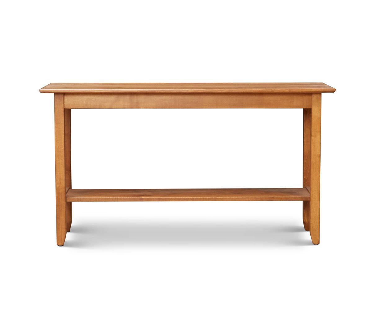 The Riviera console table stands tall and shines with its straighforward, adaptable design. Handcrafted in Oregon from solid maple, this piece features a slight taper to the legs, a lower shelf for organization and a light stain to enhance the natural beauty of the wood.