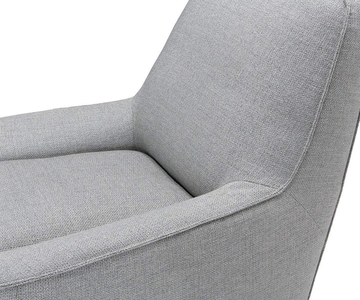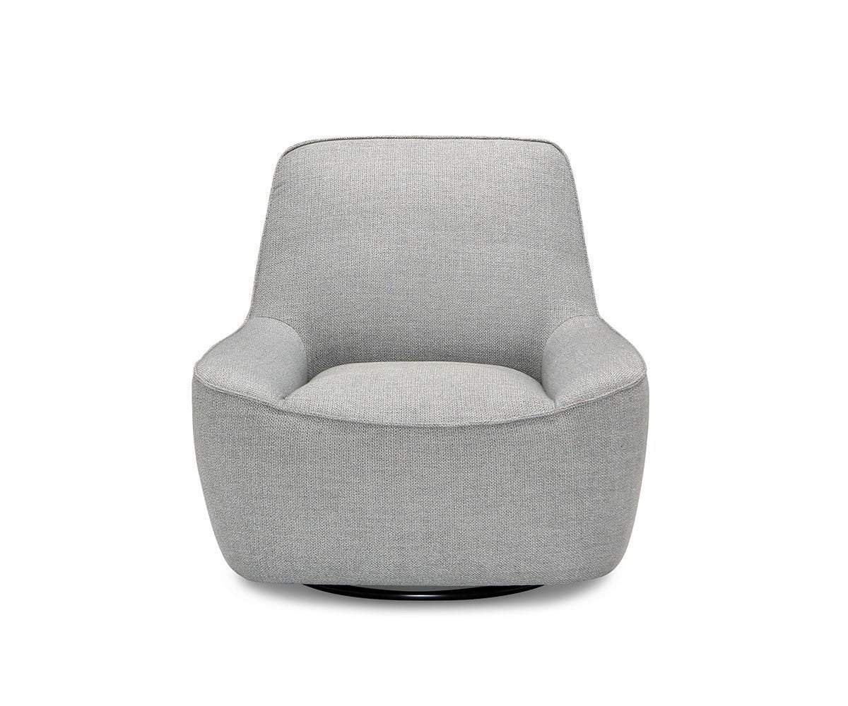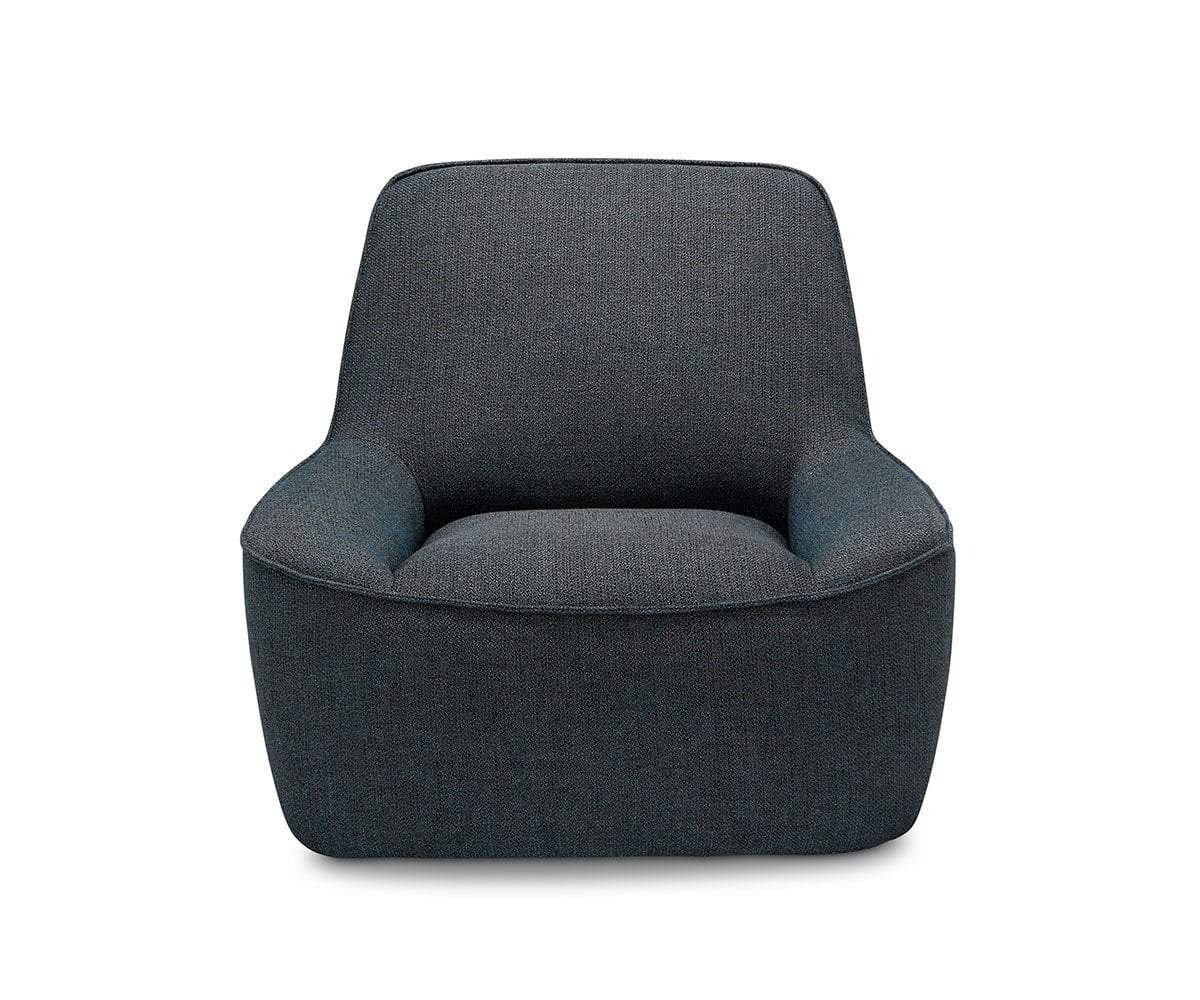 Cool contemporary style meets incredible comfort in the Rost swivel chair. The supportive back flows to the low, wide arms and cushioned seat. Plush upholstery displays a woven pattern outlined with piping detail that together, gives texture and dimension to this piece, which further adds to the visual appeal. The hidden metal swivel base provides stability plus the ability to turn 360 degrees and not miss a moment of the conversation or entertainment going on in your living space. This unique seat welcomes you to relax and is sure to become your favorite go-to spot.