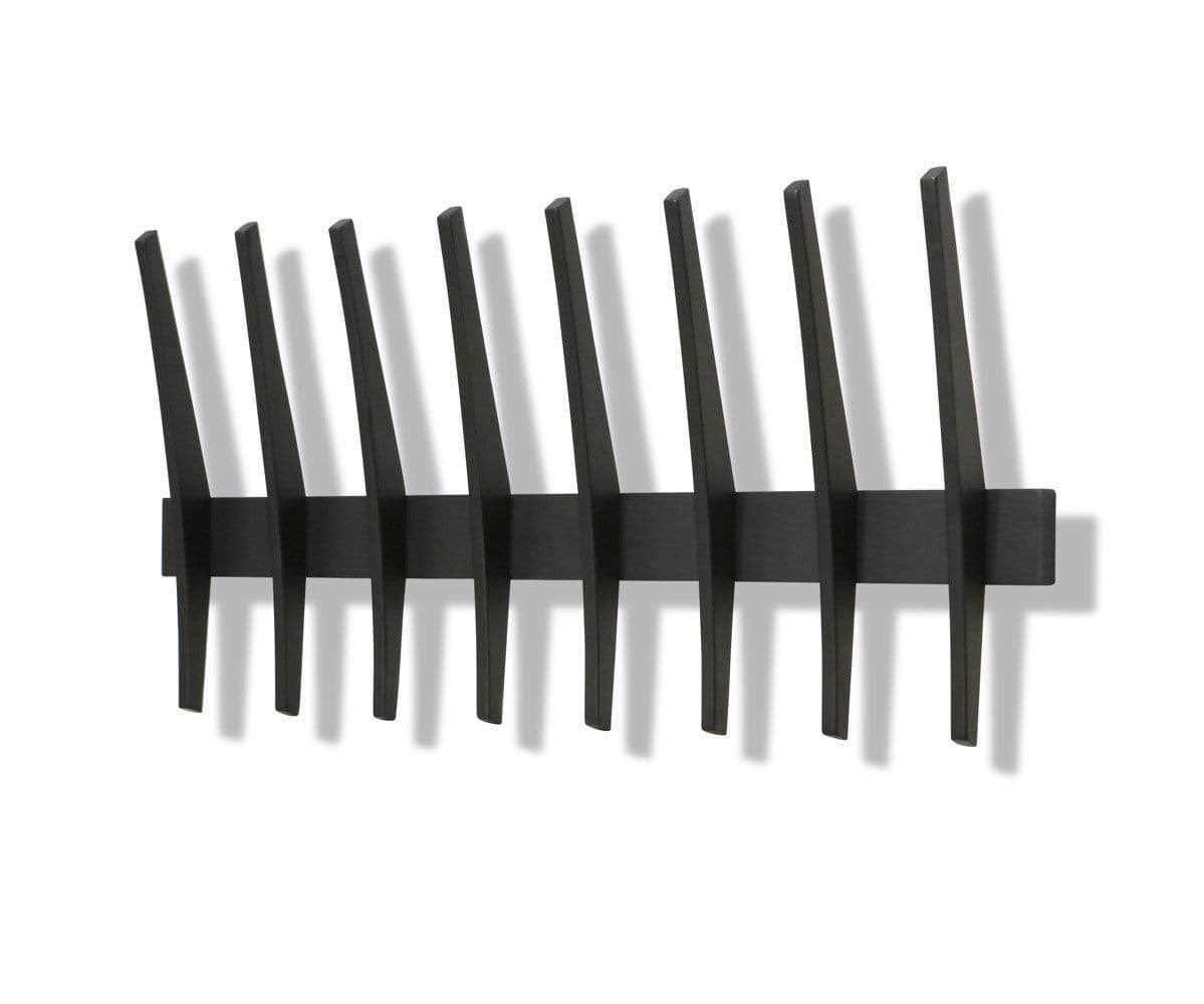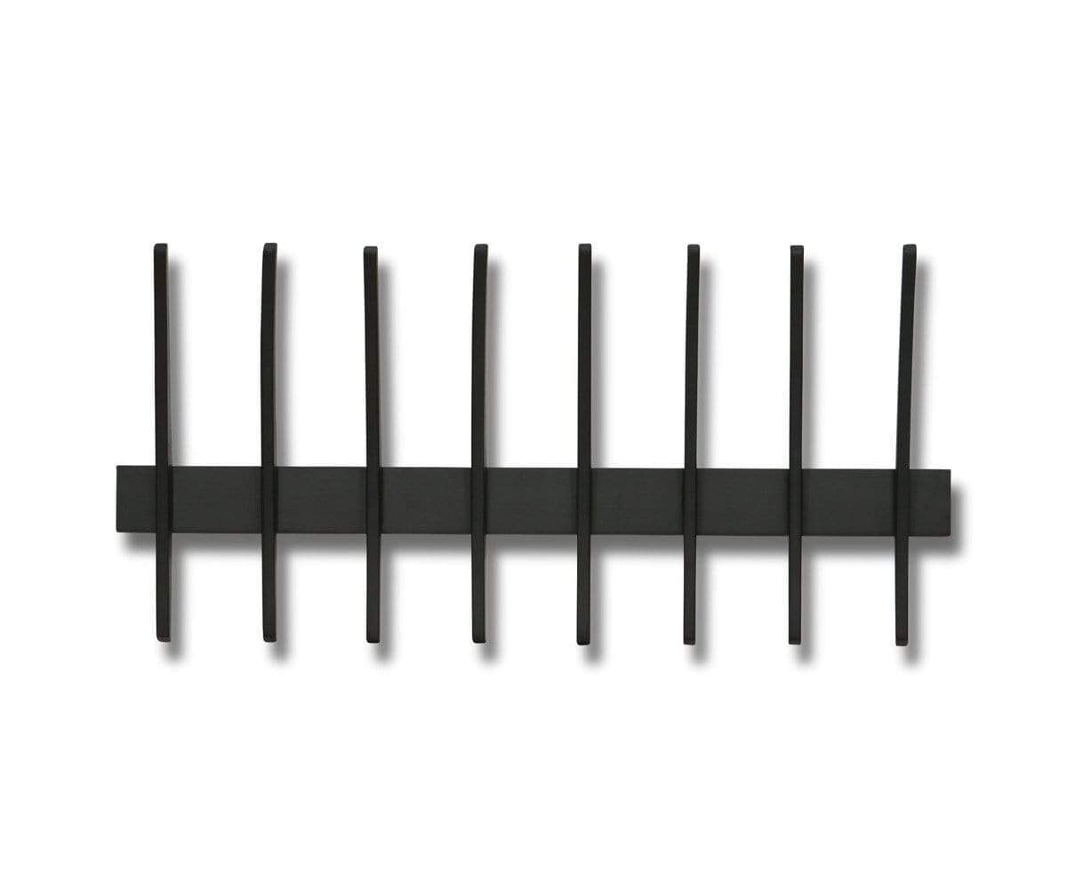 The Royken wall-mounted hooks give organizational potential to empty wall space. This minimalist design features eight large hooks, ideal for hanging coats, bags, plants and more. It’s crafted from rubberwood with a black stain.