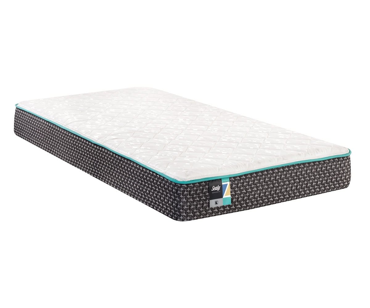 The Sealy Joyfulness firm mattress offers the comfort of a pillowtop with deep support for uninterrupted sleep. Sealy's patented Posturepedic technology supports your child’s body without creating any pressure points and SealyCushion(TM) Air Foam® technology provides added softness and air flow, ensuring your little ones don’t get overheated while sleeping. The innovative SolidEdge(TM) HD System® greatly improves the seating surface when reading or playing, plus a soft breathable knit cover helps fitted sheets grip the mattress.